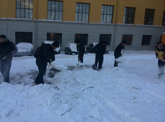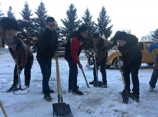 早上7:10, 2011级各班级团支部同学手拿扫雪工具早早地来到地质宫门前和科技之星广场前集合,大家按照预定的分工区域迅速开始了扫雪工作。由于前日长春市连降大雪,道路积雪较多且较厚,为大家的扫雪工作带来了许多困难。但在扫雪过程中,朱宇老师“以身示范”,与同学们一起投身到辛苦的劳动中,大家忘记了天气的寒冷,每个人都干劲十足,铲雪、除雪、装雪、运雪每一个环节都分工明确、配合默契。经过大家两个多小时的辛苦奋战,地质宫停车场和科技之星广场的积雪都被清理干净,道路恢复了原先的整洁与通畅。最后,朱宇老师对同学们的辛勤劳动给予了极大的肯定,他希望大家可以通过冬季集体扫雪活动来增强班级团支部凝聚力和集体荣誉感,坚持“实现人生梦想,从踏踏实实做好点滴小事开始”……