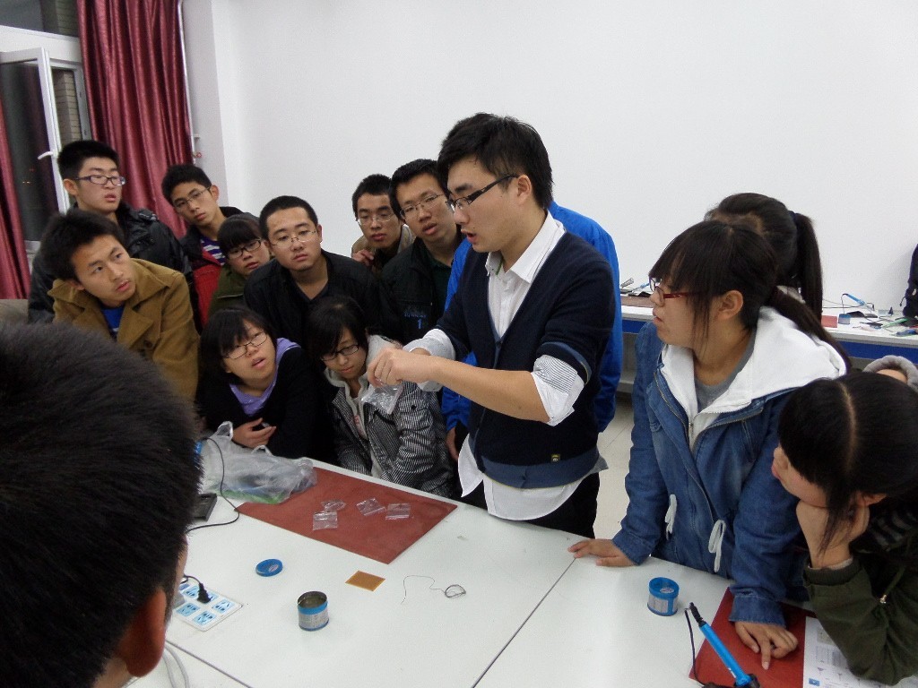 为认真贯彻落实习近平总书记在2013年国庆节参观北京中关村时有关“科技创新”的重要讲话精神,进一步提高青年员工的创新精神和实践能力,为广大电子爱好者提供一个良好的学习交流平台,锻炼员工专业技术技能,增强员工的竞争力,suncitygroup太阳成集团老员工科技协会于2013年10月26日在中心校区李四光实验楼533室组织了第二期电子科技技术培训活动,本次培训由科技协会主要骨干成员进行指导,协会2013级全体新成员参加了此次培训。