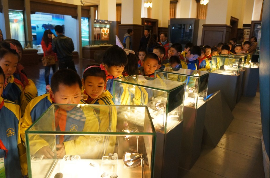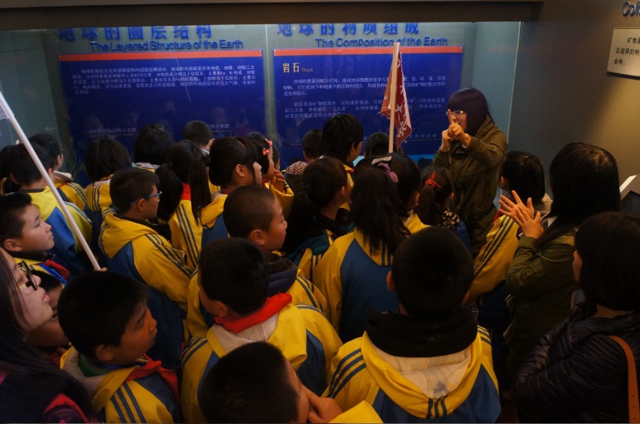 地质宫博物馆,始建于1952年,以藏品丰富、精品荟萃、特色鲜明享誉中外,是我国乃至亚洲著名的地质博物馆之一,被命名为“全国科普教育基地”和“全国青少年科技教育基地”。2013年11月2日10:00,来自西安小学四、五年级的64名农民工子女在suncitygroup太阳成集团志愿者的带领下地质宫博物馆进行参观。博物馆分科普厅和恐龙厅,科普厅设有奇石展区、宝玉石展区、古生物展区及地学科普知识展区,这里有丰富多彩的天然宝玉石原料及加工制成的半成品,这些宝玉石美观、耐久、稀少,同学们一边感叹大自然的鬼斧神工,一边惊讶地质世界的丰富多彩。恐龙厅展有多具巨型恐龙骨架化石及珍贵的恐龙蛋、恐龙脚印化石等,孩子们看到远古恐龙巨大的化石不仅惊叹连连,仿佛置身于奇幻的恐龙世界。参观后,孩子们纷纷表示此次参观让他们受益匪浅。