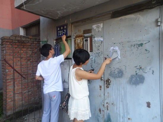 社会实践团成员首先来到长春市朝阳区清和街道南昌社区街道委员会,街道工作人员热情地接待并向实践团的志愿者们讲解了本次清洁社区的主要工作任务即清理社区楼道的小广告。据街道工作人员介绍,楼道小广告一直困扰着小区居民,影响社区环境卫生。为了改变社区整体环境、提升整体形象,社区工作人员希望与老员工志愿者一同行动,为美化小区环境出力。上午9:00,清理工作正式开始,志愿者们深入到社区楼院里,积极开展清除小广告的活动,虽然天气炎热但志愿者们依然积极热情,大家纷纷拿起小铲子、喷壶等工具对社区内的小广告进行了集中清整。期间,有社区居民经过看见志愿者们辛苦的工作,纷纷向志愿者们表示感谢。经过三个多小时的辛苦工作,志愿者们将南昌社区的楼道小广告全部清理干净,有效地维护了社区的整体形象,保障了社区环境的干净整洁。