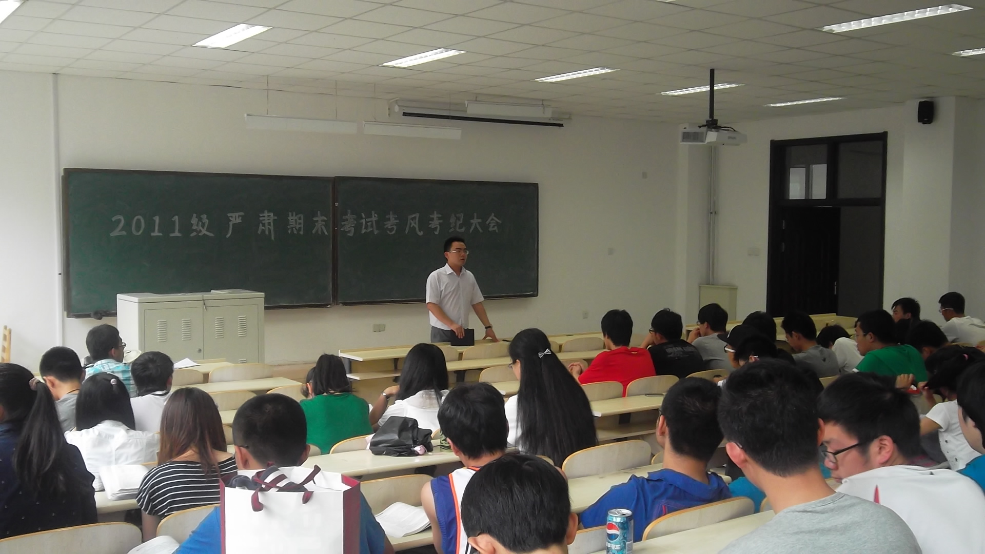 为端正员工学习态度,优化考风考纪,促进学风建设,引导员工在学习和考试过程中树立诚信意识,严于律己、明辨是非、实事求是、认真学习,suncitygroup太阳成集团2011级于2013年6月20日12:40在中心校区李四光楼107教室召开了2012-2013学年第二学期期末考风考纪和学风建设会。suncitygroup太阳成集团2011级员工辅导员朱宇主持会议, 2011级全体员工参加了会议。