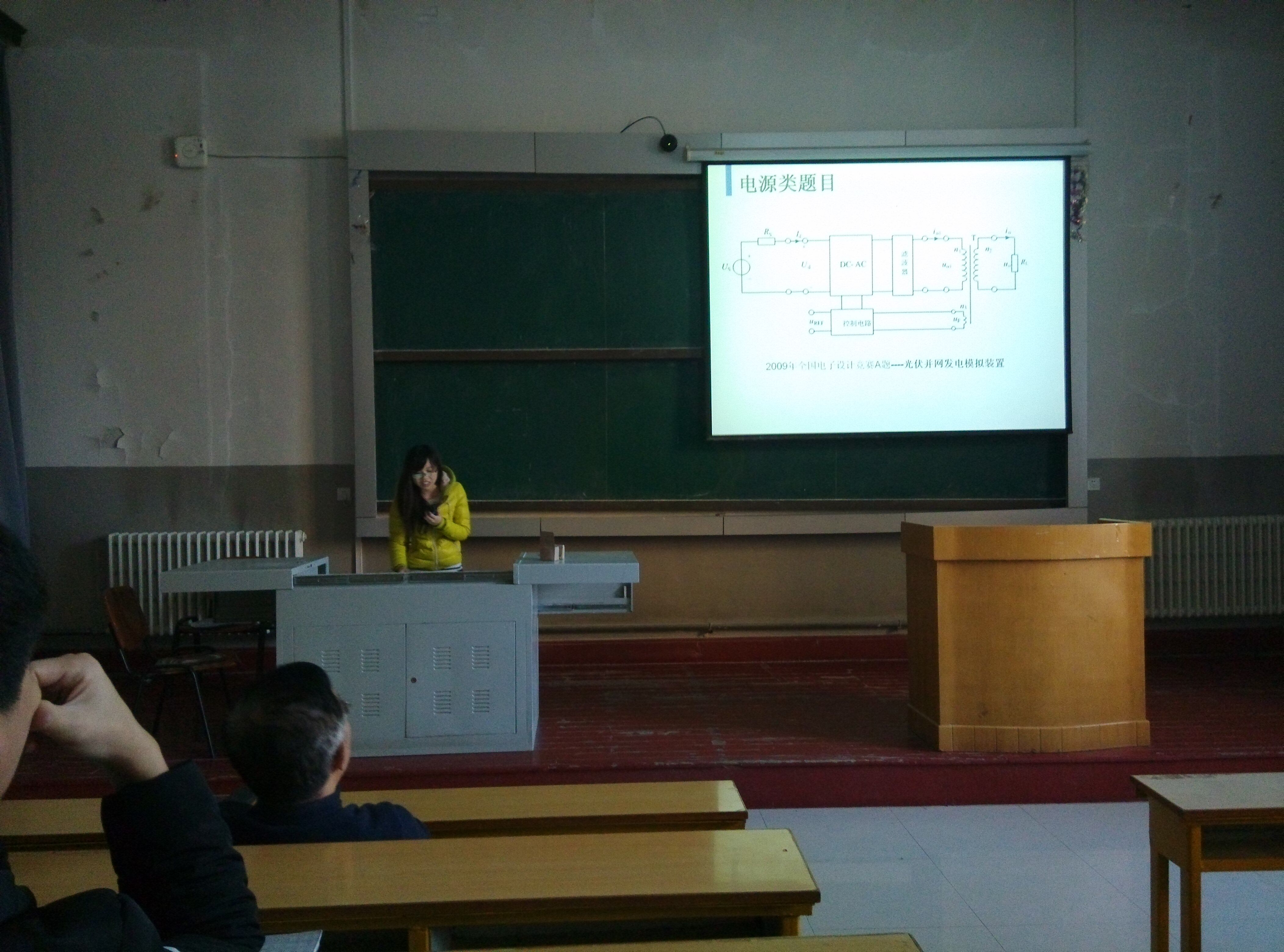 此次沙龙的内容更加丰富,沙龙活动开始便直入主题,首先由周晖学长,王倩学姐讲解报告,报告题目是《2015年国赛A题—双向DC-DC变换器》。照顾到低年级员工,王倩学姐首先对基础的电源知识进行了介绍,由大家高中便已经熟知的知识点,引出BUCK电路、BOOST电路等新知识,深入浅出,使在场各位都很轻松的接受,并极大提升了低年级学员的兴趣。紧接着,周晖学长趁热打铁,为大家详细解读了国赛的A题,带领大家体验了国赛时发现问题、解决问题的种种经历。而且周晖学长还根据自己的理解将电路模型进行分模块讲解,并对于如控制电路和主电路如何联系等核心问题进行详细剖析,在座各位都听得津津有味。新成员们热情高涨,王应吉老师在学长学姐们进行讲解时一直专注地聆听,并在报告结束后的提问环节也参与了进来,王老师详细而又通俗易懂的讲解,让大家一次又一次爆发掌声。在王老师的帮助下,提问进行得十分顺利。提问环节结束时,大家都有些意犹未尽。王老师在随后又为大家介绍了阻抗匹配的相关知识,通过最基础的戴维南、诺顿等效的简单电路开始,为大家详尽地介绍了阻抗匹配的概念,原本复杂冗长的概念,到了王老师手中仿佛变成了1+1=2,大家都在惊叹,又在全神贯注地听着,生怕漏掉什么。而后对于阻抗匹配的应用实现部分,王老师以机智幽默的讲解方式,让会场又被掌声淹没。