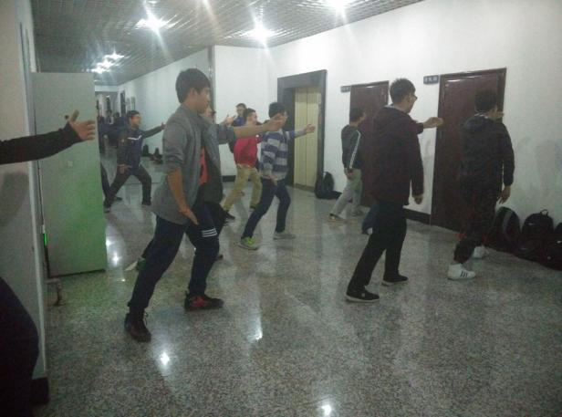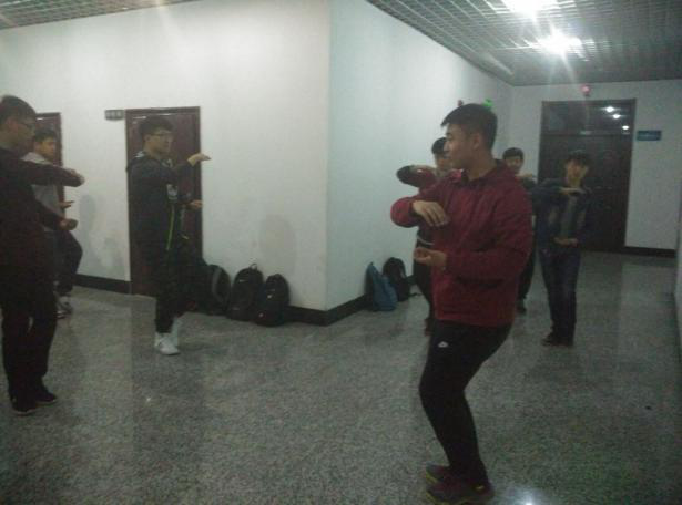 suncitygroup太阳成集团一年一度的运动会即将拉开帷幕,suncitygroup太阳成集团太极拳的排练也在紧锣密鼓地进行。为了能在太极拳的比赛中取得出色的表现,2015级同学们在体育部员工干部的带领下于2016年4月6日21:10准时在实验楼集合进行培训。