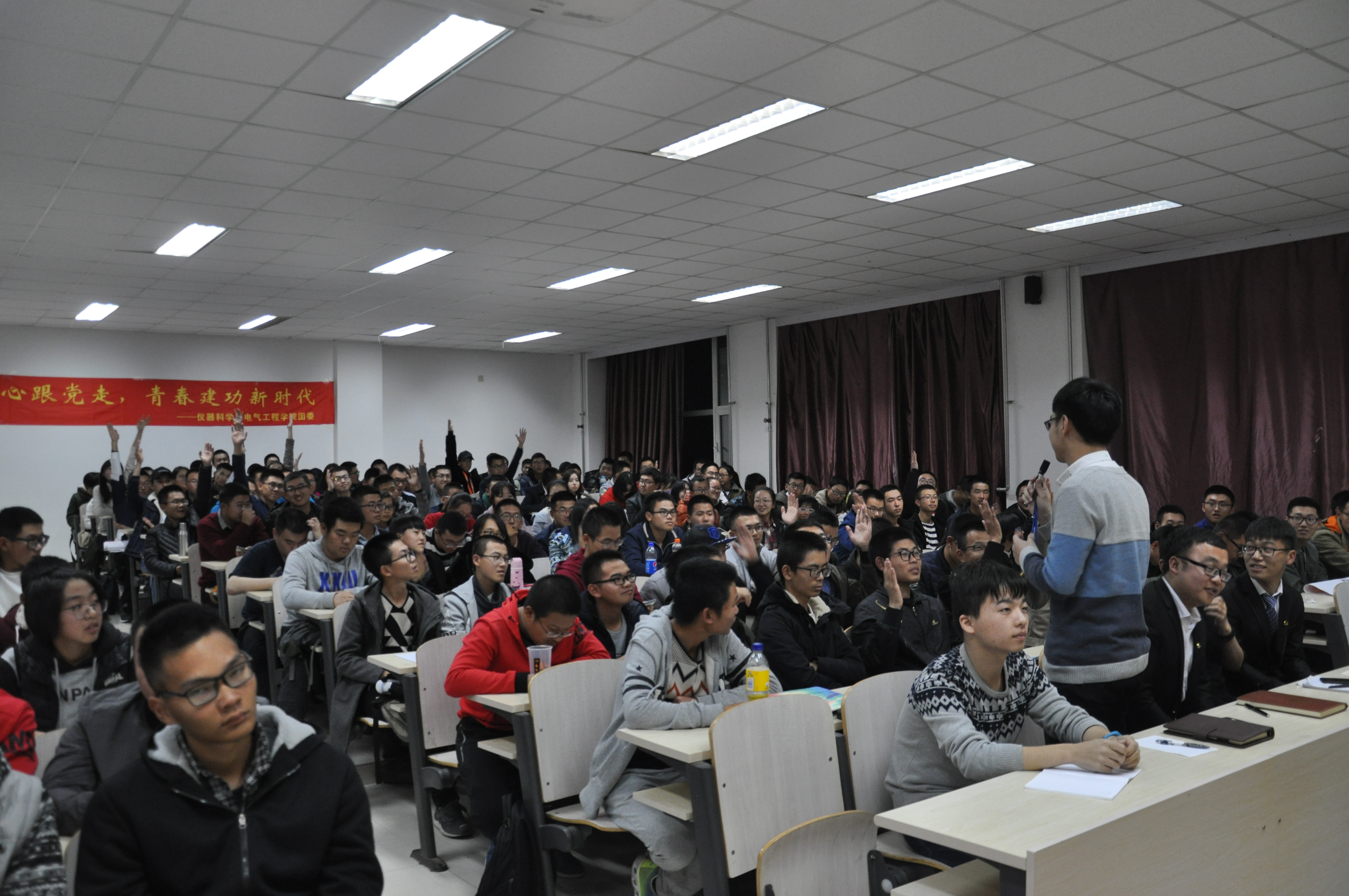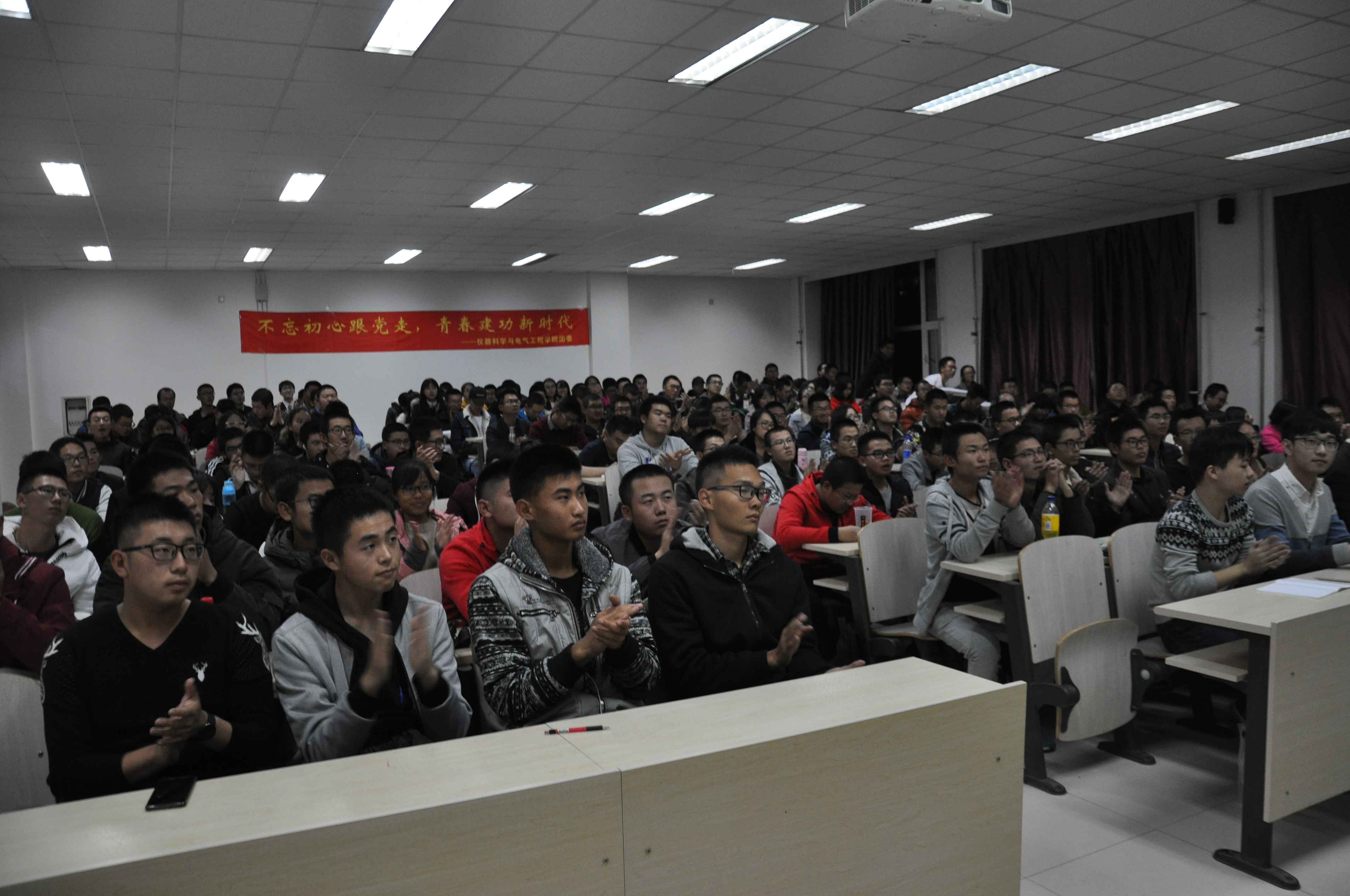 丹枫迎秋,桂子飘香,在此春华秋实之际,中国共产党第十九次全国代表大会在北京隆重召开,习近平同志代表第十八届中央委员会向大会作出了总结报告。不忘初心、牢记使命,为深入学习宣传习近平同志在十九大报告中提出的新思想、新要求,2017年10月22日18时,suncitygroup太阳成集团在李四光楼隆重举办了“不忘初心跟党走,青春建功新时代”学习宣传十九大主题活动。