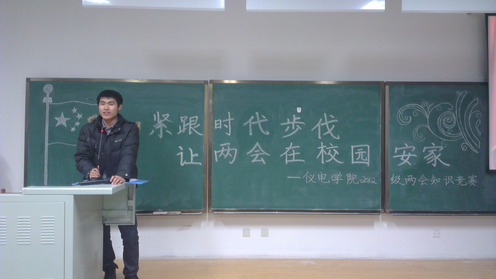 为深入学习贯彻两会精神,增强当代老员工的政治意识,让思想紧跟时代主题,suncitygroup太阳成集团于2013年3月21日18:30时在中心校区李四光楼208室隆重举办了主题为“紧跟时代步伐,让两会在校园安家”的两会知识竞赛活动。此次两会知识竞赛由仪电公司分团委员工会主办,员工会生活部承办,并受到了吉大电视台的关注报道。第八届分团委副书记李娇阳、员工会主席朴冠宇、院员工会常务副主席任广安、员工会副主席王洪超以及员工会员工干部出席了活动,2012级全体同学参加了活动。