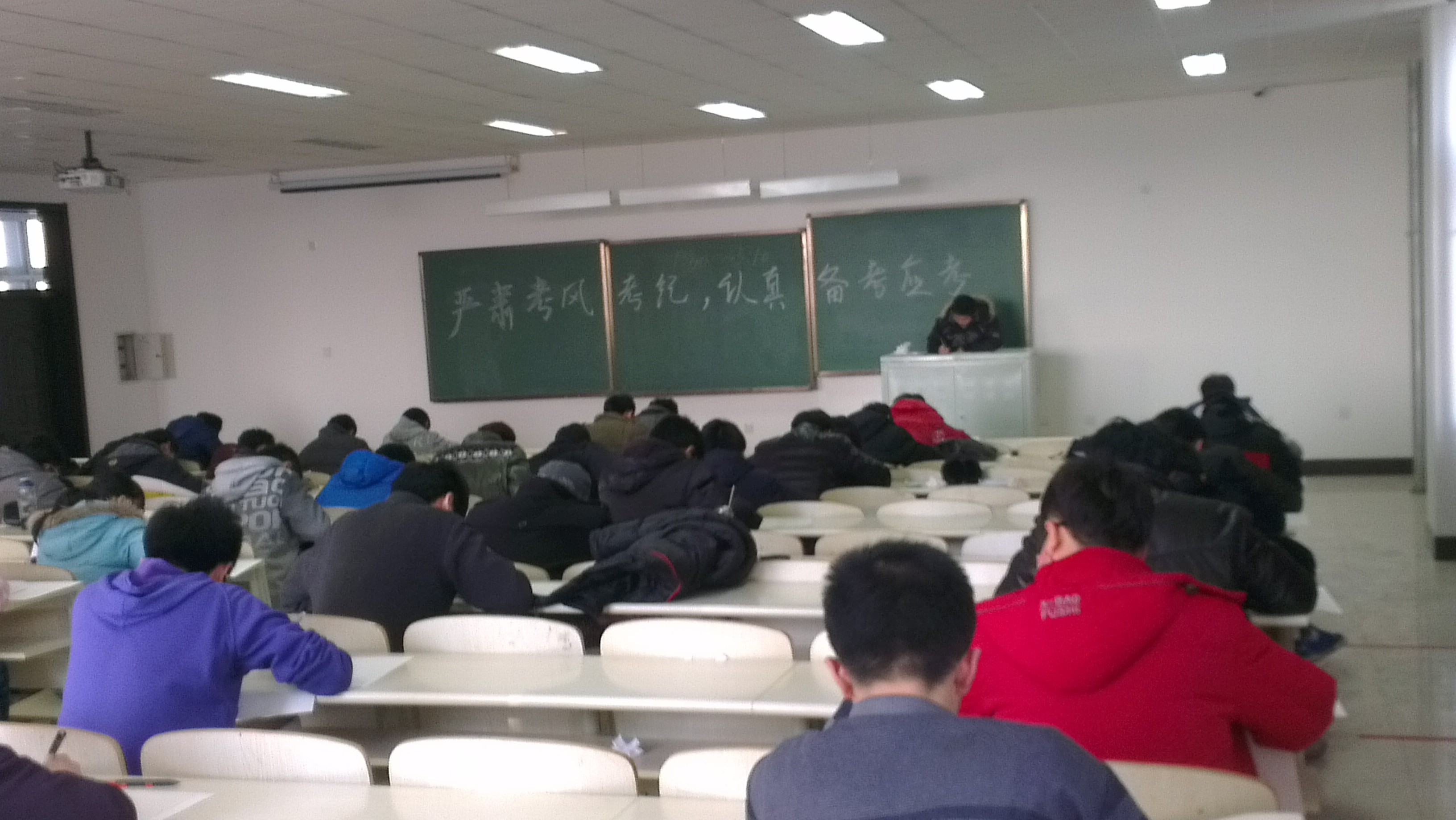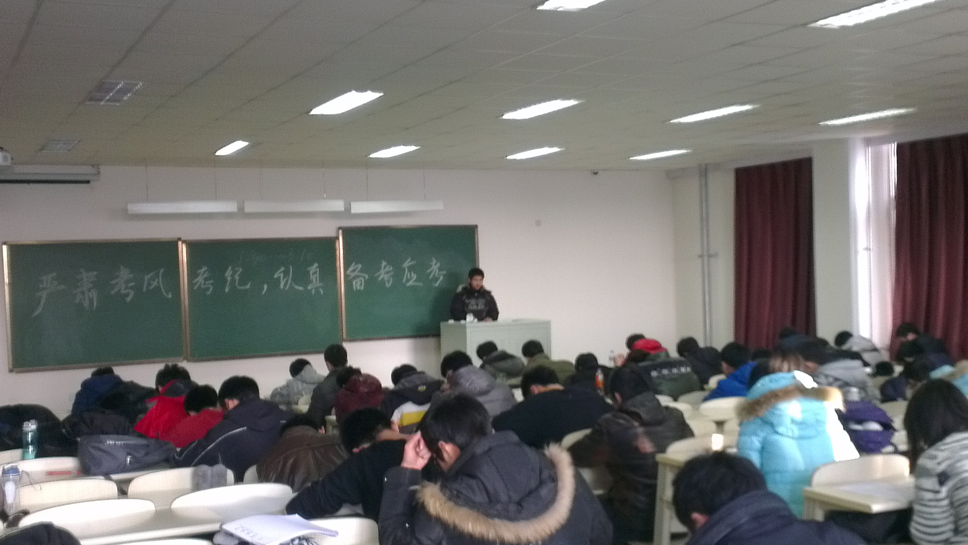 为进一步深化和加强学风建设,优化和提升学习环境,全力培养和打造一届严谨为学、励志笃行的新时代优秀老员工,suncitygroup太阳成集团2011级陆续开展了以深化学风建设,优化学习环境为主题的系列活动。在期末考试日益来临之际,20121212suncitygroup太阳成集团2011级在中心校区李四光教学楼举行了2012-2013学年上学期第一次期末模拟考试。