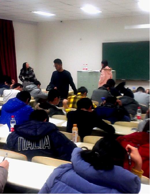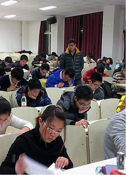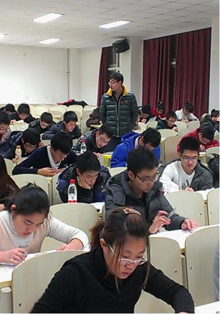 为更好地组织期末考试,2012年12月15日晚18:00时,suncitygroup太阳成集团分团委员工会学习部组织2012级新生在中心校区李四光楼进行期末模拟考试。2012级辅导员蔡印老师、员工会各部部长来到考场进行监考工作。