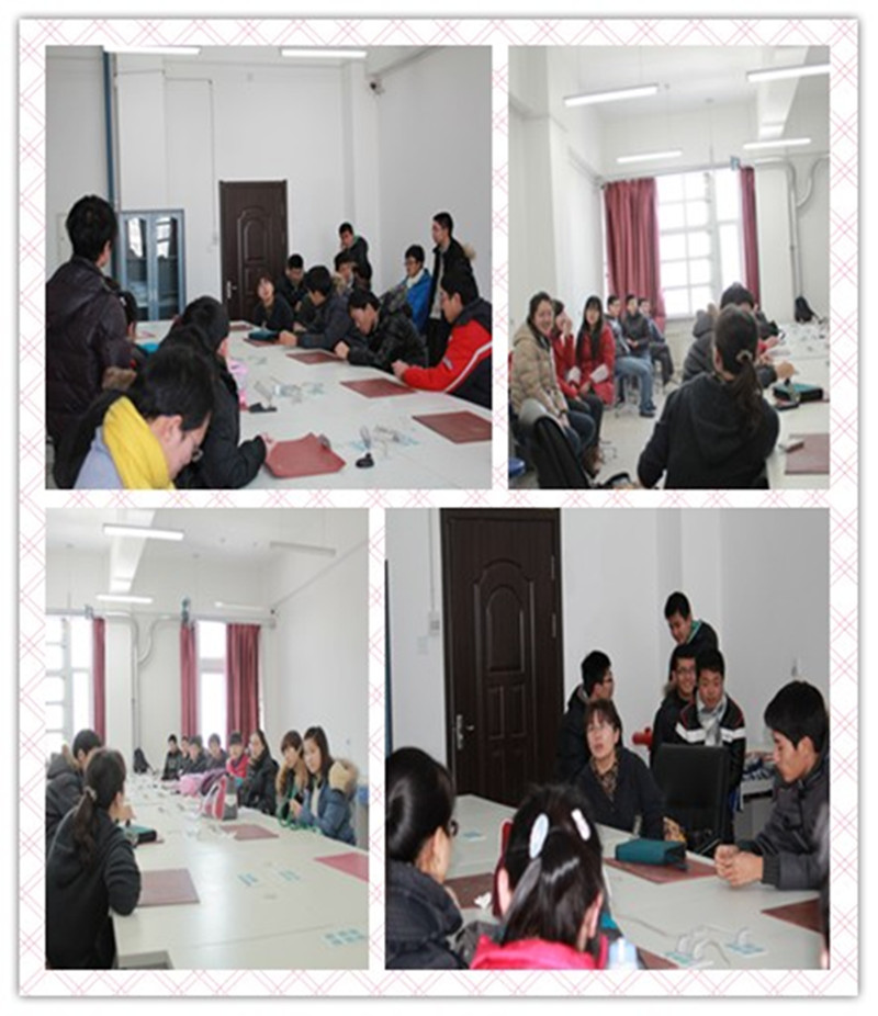为进一步深化和加强学风建设,优化和提升学习环境,全力培养和打造一届“严谨为学、励志笃行”的新时代优秀老员工,suncitygroup太阳成集团2011级陆续开展了以“深化学风建设,优化学习环境”为主题的系列活动。为更好地关心员工学习生活,了解员工期末复习情况,促进员工的全面发展,suncitygroup太阳成集团2011级四班于2012年12月26日13:30在中心校区李四光实验楼533室举办了期末备考座谈会,suncitygroup太阳成集团副经理、2011级四班班导师嵇艳鞠教授与651104班全体同学参加了此次座谈会。