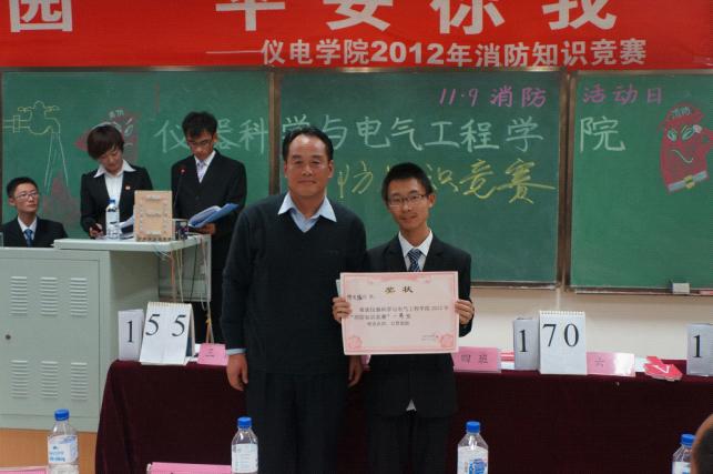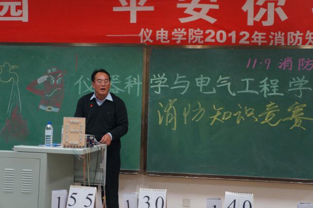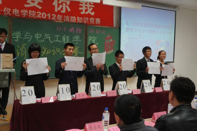 为热烈庆祝党的十八大胜利召开和2012年全国消防日的到来,进一步提高广大师生的消防安全意识,广泛调动青年员工对消防安全工作的积极性,提高青年员工消防应急自救本领,进一步推进消防安全知识普及,切实做好冬季防火工作,努力构建和谐、安全的校园环境,suncitygroup太阳成集团于2012年11月9日18:30隆重举办了“平安校园,平安你我”2012年度消防安全知识竞赛。suncitygroup太阳成集团保卫处校区办公室副主任李允权老师、保卫处校区保卫办齐占斌老师、仪器科学与电气工程公司党委副书记兼副经理邱增凯老师、公司行政副经理房华老师、公司行政办公室主任边江老师、院员工工作办公室主任王冕老师、院团委书记刁庶老师、院团委副书记朱宇老师、公司2012级辅导员蔡印老师应邀莅临比赛现场并担任评委,仪器与电气公司第八届分团委副书记李娇阳、员工会主席朴冠宇、常务副主席任广安、副主席王洪超及学团组织各部门部长、副部长出席了活动,来自公司2012级各班选派的参赛选手和2012级全体同学参加了本次活动。本次活动由suncitygroup太阳成集团主办,suncitygroup太阳成集团员工会生活部承办,得到了公司科技协会的相应支持,并受到了吉大电视台和suncitygroup太阳成集团报的关注报道。比赛由公司2011级张楠、刘志尧、徐维三位同学主持。