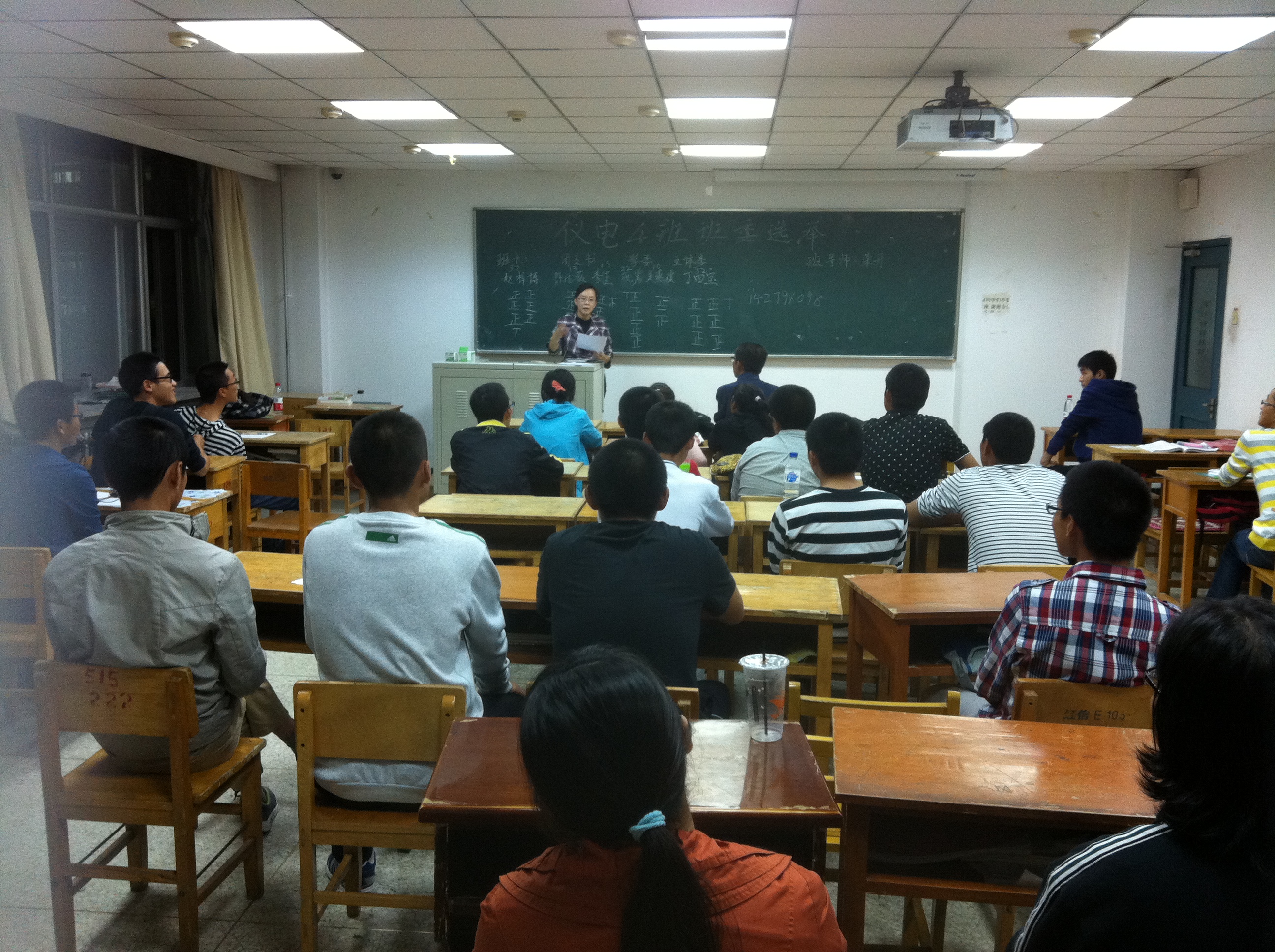 班会共分两个部分:班委竞选演讲;班导师讲话。首先是精彩的竞选演讲。竞选人按照班长、团支书、学习委员、文体委员的顺序依次上台介绍自己的经验、个人能力等,然后陈述自己对于竞选职位的理解以及对班级未来的期望。竞选人都展现了自己不俗的能力以及独特的魅力,都表现出对班集体的热爱,愿意为班集体奉献出自己的力量,并承诺今后将为班级作出自己的贡献。演讲结束后,为确保选举的公平公正,采用无记名投票的方式投票。每位同学都经过了仔细的思考后写下了心目中班委的名字。经过统计,由2010级学长宣布了最后的统计结果。竞选成功的班委同学依次做了诚挚的就职演讲,都对各位同学的支持信任表示感谢,并承诺今后会做得更好。最后,由各班班导师总结了这次班会。并表达了对同学们新学期、新环境中的极大期望,给了同学们极大的鼓励。