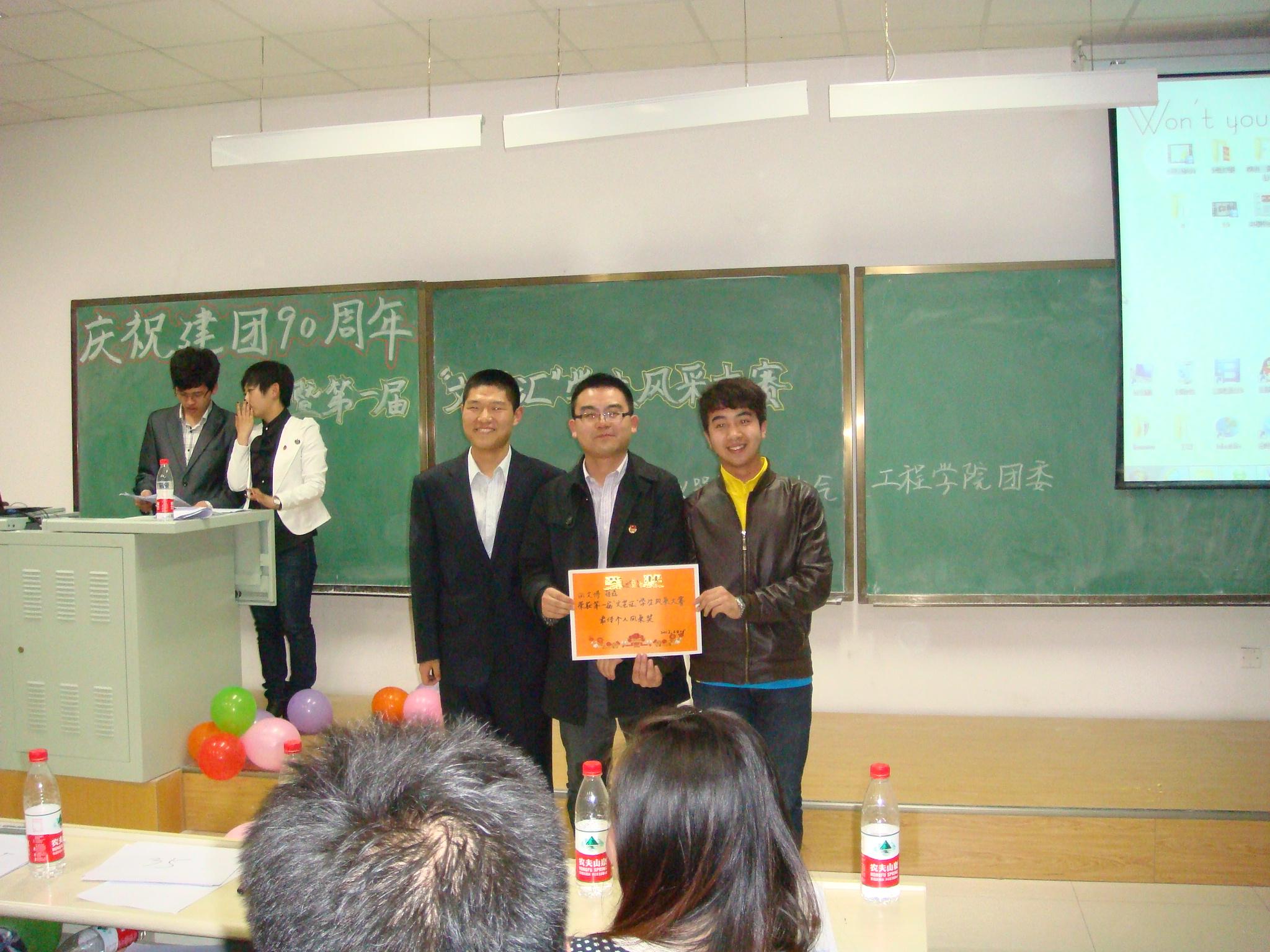 穿岁月峰头,伴历史云烟——2012年是“五四”运动93周年,更是中国共青团成立90周年,为继承五四运动精神,发扬中国共青团的光荣传统,弘扬中华民族的伟大精神,进一步引导广大青年员工坚定社会主义信念,同时为公司广大青年员工提供一个充分展示青春风采的舞台,suncitygroup太阳成集团团委、员工会于2012年4月15日18:00在中心校区李四光楼302教室举办了以庆祝建团90周年——“感怀历史,舞动风采”为主题的第一届“文艺汇”员工风采大赛,院员工工作办公室主任兼2010级辅导员王冕、院团委副书记兼2011级辅导员朱宇、第七届院员工会主席许鹏、第七届分团委副书记包志强及第七届院员工会全体成员、2011级全体同学参加了此次活动,活动由2011级关钊、张楠主持。