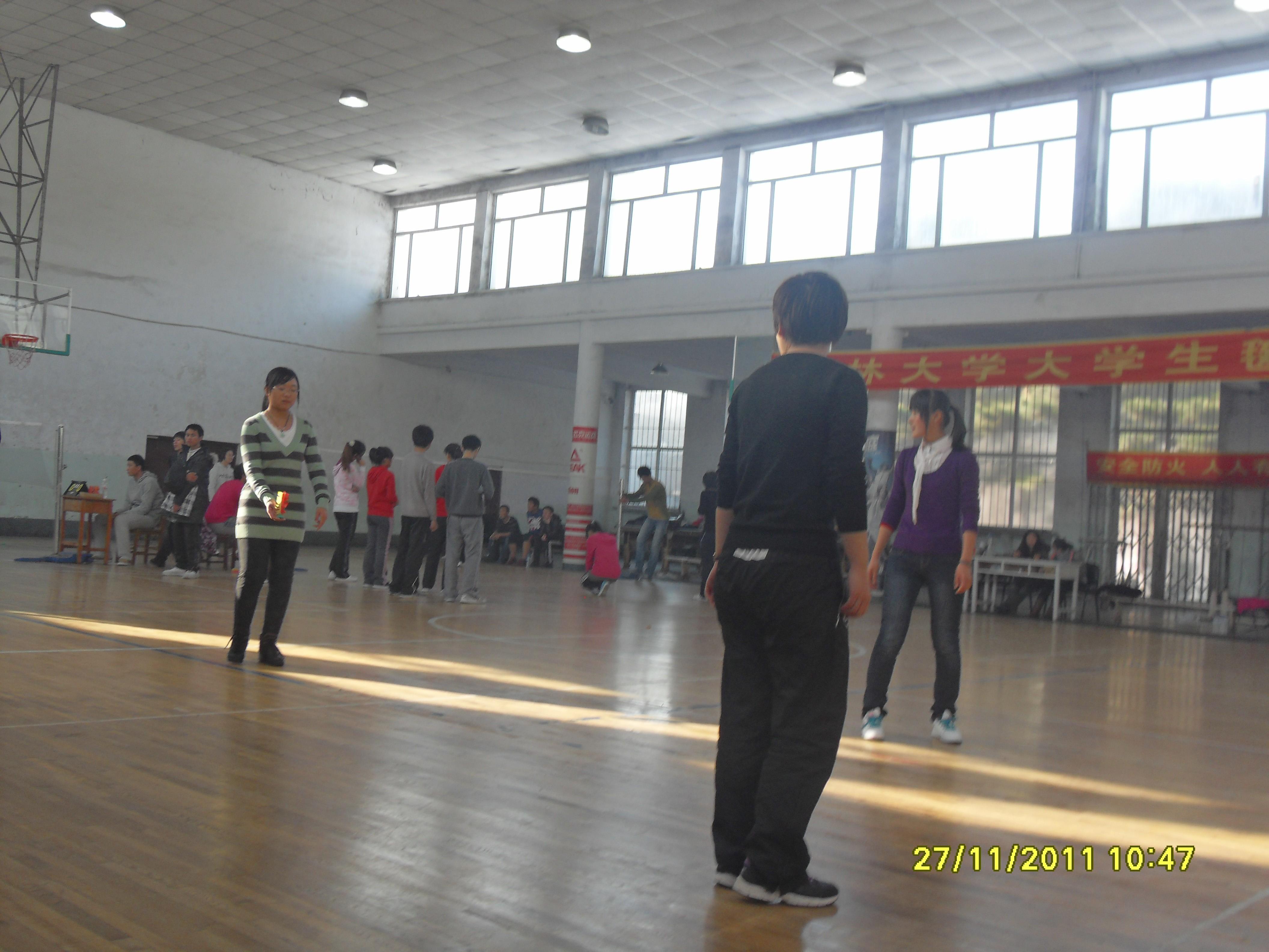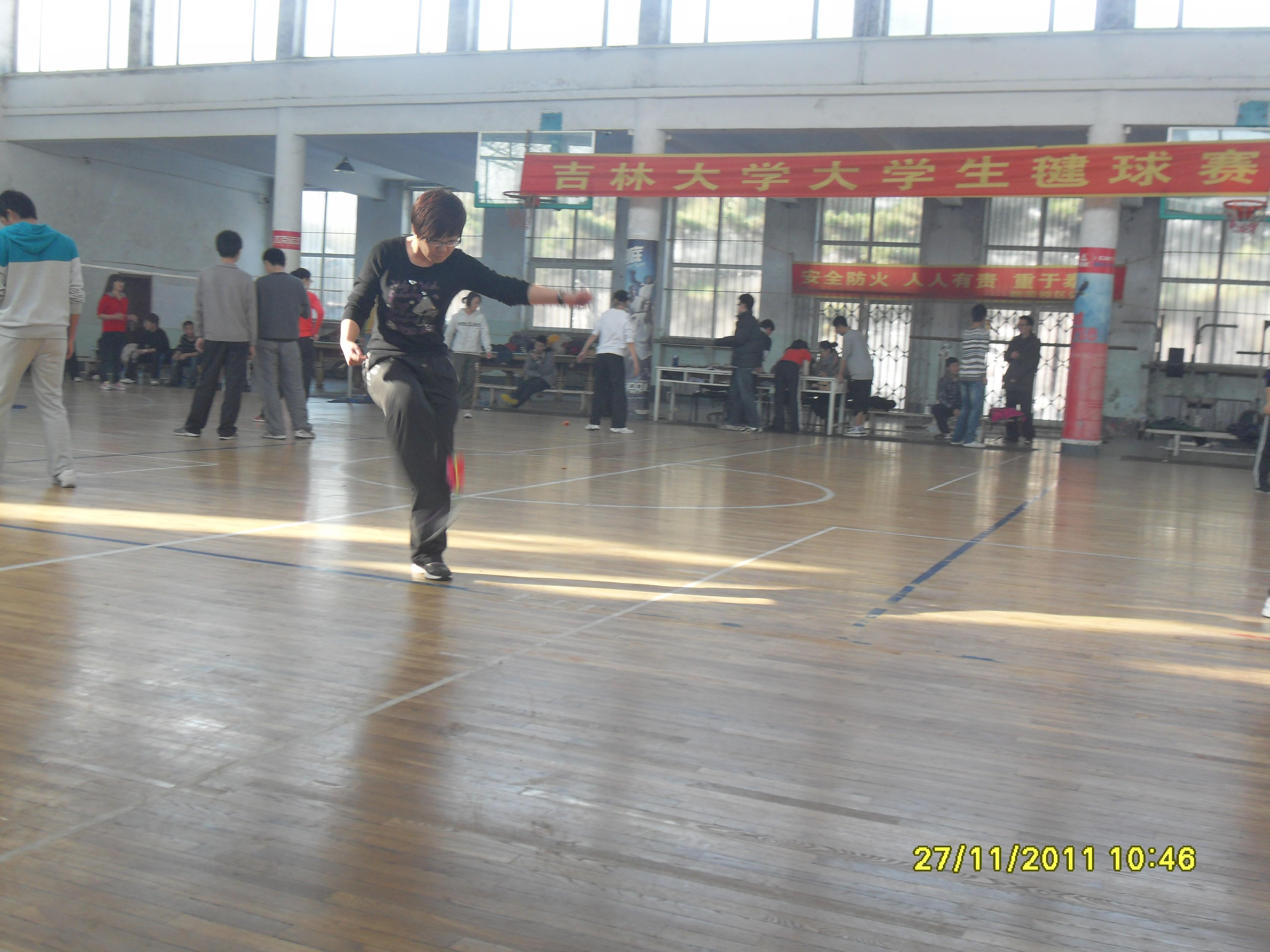 2011年suncitygroup太阳成集团第十一届员工毽球公开赛于2011年11月26至27日在朝阳校区体育馆举行,本次比赛,suncitygroup太阳成集团选派2011级李秋怡、吕艳妮、张焕焕、刘梦婉、韩哲鑫、郑晖、王桥、吴天峰等八名同学参赛,在男子单人赛和女子单人赛中,吴天峰、吕艳妮分别以小组第一晋级下一轮,并最终进入16强;在女子三人赛中李秋怡、吕艳妮、张焕焕以小组第二晋级并最终取得第三名,韩哲鑫、郑晖、王桥在男子三人赛中取得第六名的好成绩。
