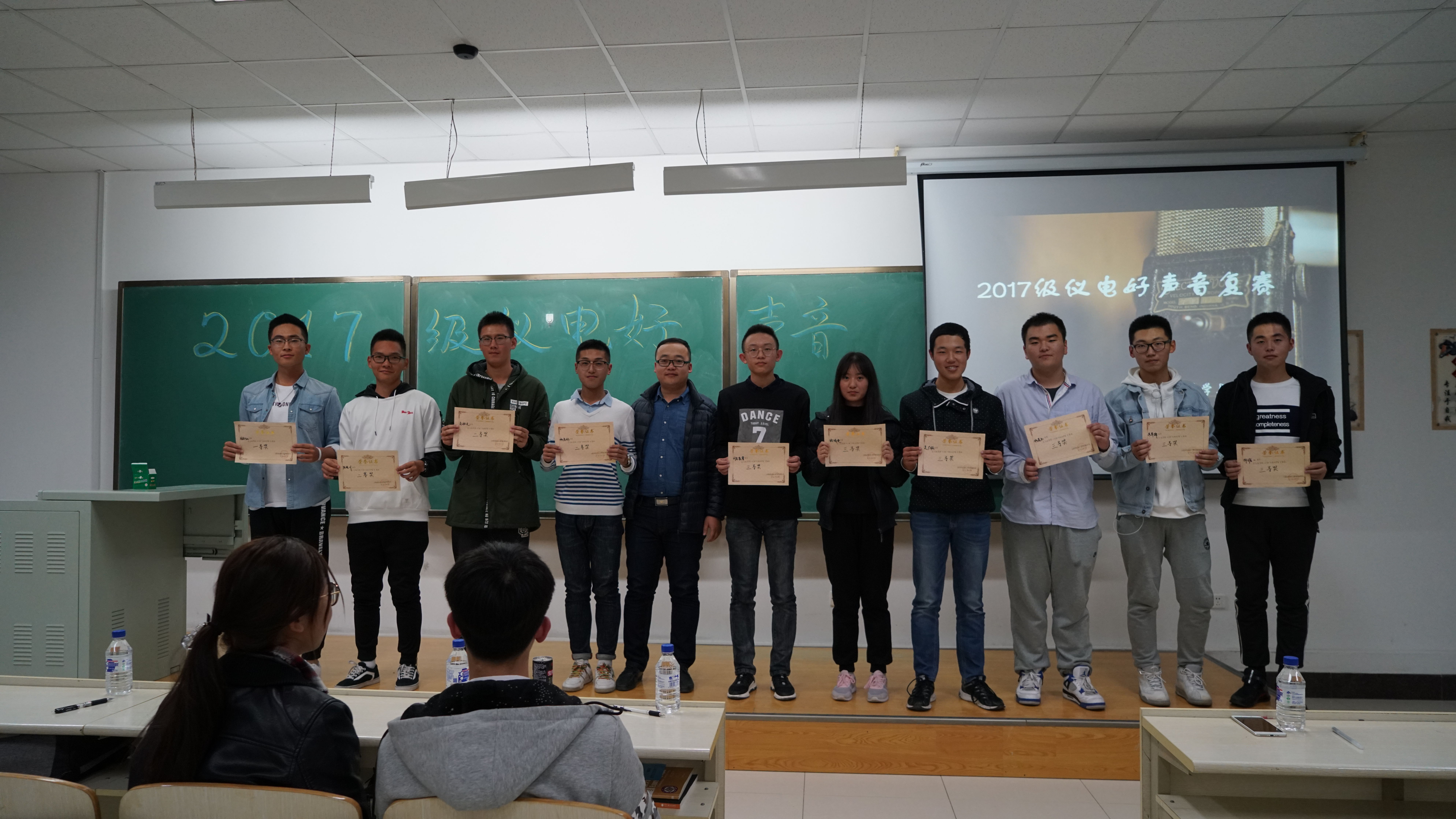 本次活动反响热烈,受到了同学们的一致好评。主持人宣布比赛开始后,“仪电好声音”十强选手依次演唱各自的曲目,包括活力四射的流行歌曲、精彩非凡的英文歌曲、婉转悠长的民谣以及令人陶醉的粤语歌。配合着现场的伴奏,每位选手都展现出了自己与众不同的嗓音与气场,为现场的评委以及观众们带来了一场视听盛宴。等到最后一位选手上场,抱着吉他轻轻哼唱民谣,将现场的气氛烘托至顶点。所有选手演唱结束后,员工会主席马松辰以及文体部部长梁佩佩发表讲话,对本次活动进行了精彩点评,同时分享了他们参加2015级“仪电好声音”时的有趣经历以及深刻的感受,同学们悉心聆听,兴趣盎然。接着,团委书记张昊宇老师发表讲话,对参加本次活动的选手表示肯定,老师幽默而风趣的话语赢得现场观众的阵阵掌声。最后,经过评委们科学严谨的计分以及评分环节,主持人宣布比赛结果,一人获得一等奖,三人获二等奖,六人获三等奖。至此,2017级“仪电好声音”活动圆满结束。