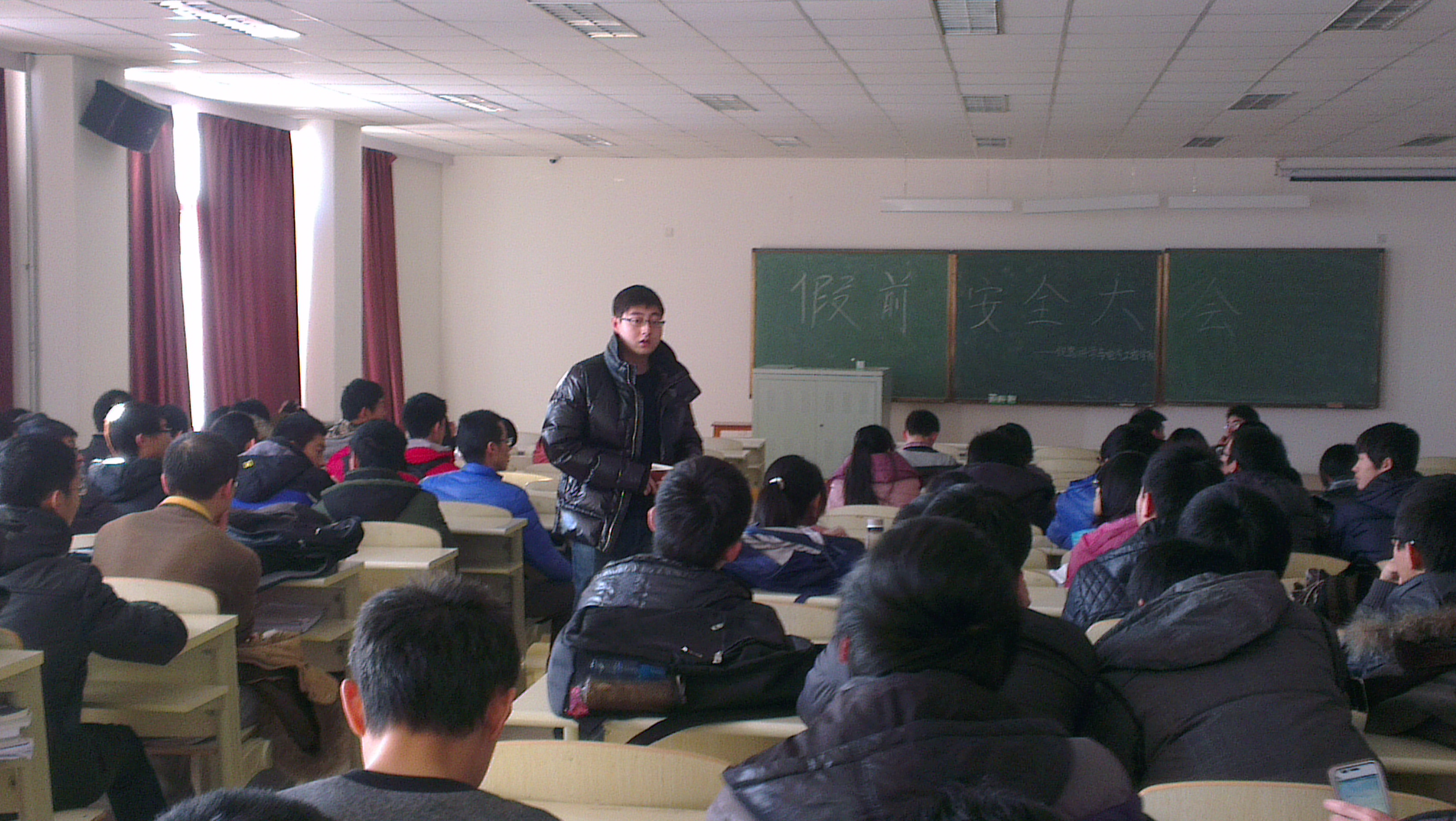 2012年12月31日12:00时,suncitygroup太阳成集团于李四光楼302室召开了期末考前动员暨寒假假前安全教育大会。2012级辅导员蔡印老师出席了本次大会,仪电公司2012级全体同学参加了本次大会。