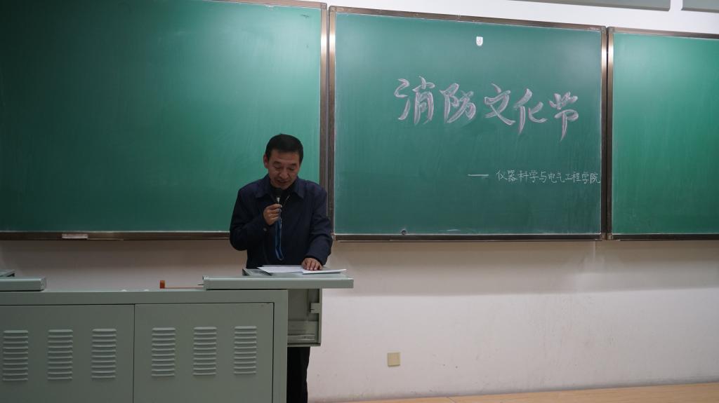 活动共分为五个环节。第一环节,北区朝阳保卫办防火科齐占斌科长首先肯定了公司在消防安全方面所做的工作,随后为公司学子详细地介绍了日常生活中的消防安全隐患以及相应的处理方法,并且讲述了报警时候的注意事项,消防器材的使用方法等,同学们频频点头,收获满满,对消防安全有了更深的认识。第二环节,2018级各班选出的代表依次上台介绍了本班的消防文化节创意视频,展示的作品丰富多彩,贴近生活,既有趣又极具教育意义,赢得了全院师生的阵阵掌声。第三环节,2018级各班分别派出两名代表,通过抢答的方式回答不同的消防文化知识。同学们热情高涨,争先作答,各抒己见。第四环节,以班级为单位的抢答环节过后,同学们意犹未尽,主持人采取了互动的模式,随机抽取一道题,由台下的同学举手回答,同学们十分积极,踊跃抢答,尽展仪电学子风采。 第五环节,在紧张激烈的抢答之后,轻松愉悦的音乐响起,王爱民教授,齐占斌科长以及葛晓野老师为各个优秀的班级颁发证书。之后王爱民教授强调,消防安全重于泰山,我们每个人都要真正把消防安全牢记于心,将理论与实践相结合,做到防患于未然。同时,王爱民教授呼吁同学们关注消防安全,提高消防意识,为传播消防安全知识、构建平安校园共同努力。