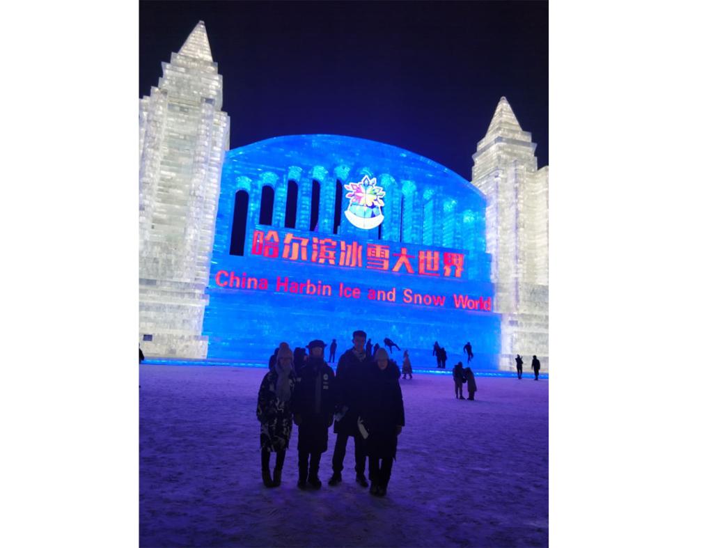 随后,调研团队参观了一年一度的冰雕展“冰雪大世界”。冰雪大世界主要通过多种主题的冰雕展示“冰城”哈尔滨冰雪文化和冰雪旅游魅力。团队成员先是观看了“中华锦绣”、“繁华龙江”等融入中国文化的传统节目,又欣赏了“欧陆风”、“天鹅堡”等具有西方特色的冰雕,享受了一场中西文化碰撞所带来的视觉盛宴。而科技的进步使得这个展会得到进一步发展,新上线的智能排队系统使得团队一行可以通过手机APP随时查看当前排队人数和需要等候的时间,不仅使游客可以更好的掌控时间,也提高了工作人员的工作效率。哈尔滨这座城市创造了其独具的冰雪与现代科技融合所创造的奇迹。