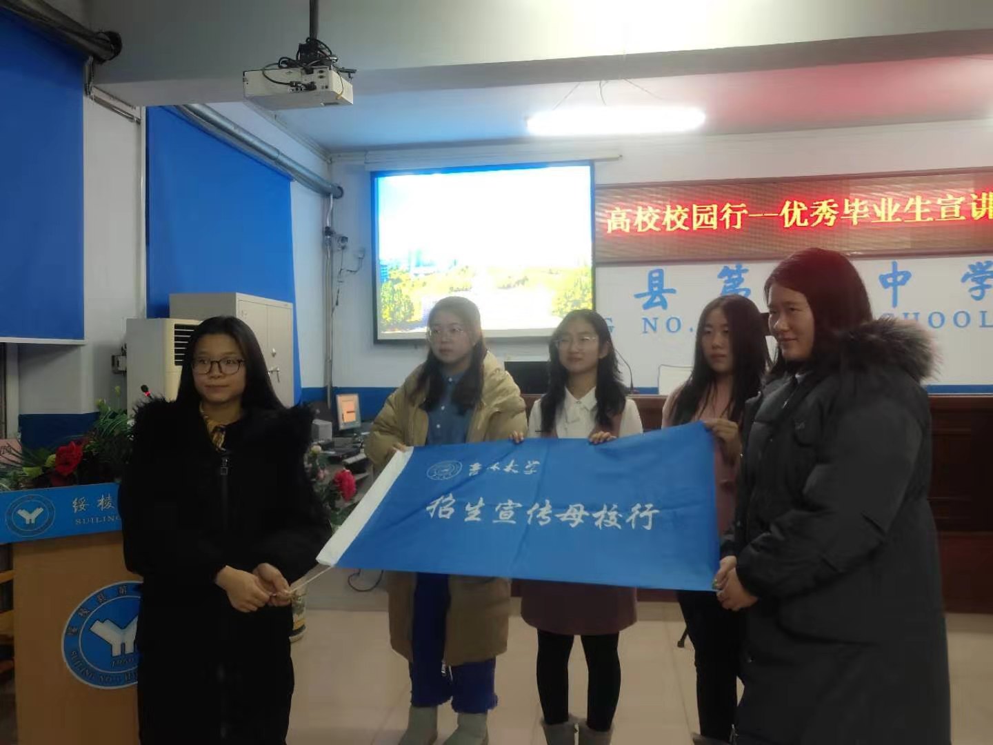 2019年1月25日至29日,suncitygroup太阳成集团寒假社会实践黑龙江省宣讲团多支宣讲队伍分别到齐齐哈尔市实验中学、黑龙江省大庆四中、绥棱县第一中学、哈尔滨师范大学附属中学等19所公司开展“千人进校园”寒假宣讲会。宣讲队伍负责人分别有王思钰,李懿真,郭秀银等。
