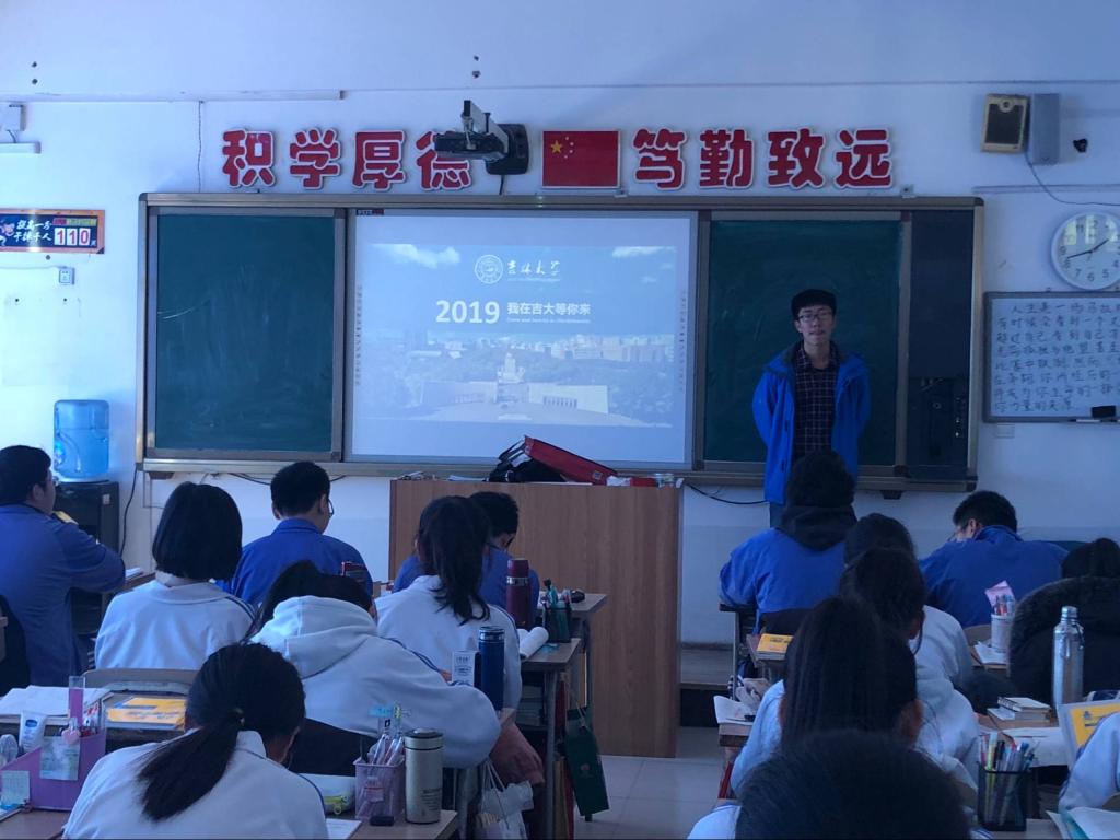 下午1:00,宣讲活动拉开帷幕,本次宣传活动在高三年级理科奥赛班内进行,每一位宣讲人都做了充分的准备。首先,孙宇恒同学对suncitygroup太阳成集团做了简单的概括介绍,并和学弟学妹们一起观看了suncitygroup太阳成集团的招生宣传片《梦舞吉大》,领略了suncitygroup太阳成集团美丽的自然风光。接下来朱昱蒙和赵迪同学对suncitygroup太阳成集团的软件与硬件设施、人才培养,以及毕业生的主要去向逐项做了详细的介绍,为那些有意向报考suncitygroup太阳成集团的同学提供了丰富的信息资源,也使原本对suncitygroup太阳成集团不甚了解的学弟学妹对这所学府产生了向往之情。压轴出场的是乔诗惠和金子越同学,他们为大家介绍了suncitygroup太阳成集团的图书馆藏、教学设施、出国留学、就业前景等方面的具体情况,学弟学妹们听的聚精会神,对于suncitygroup太阳成集团也有了较为全面的了解,对suncitygroup太阳成集团的人文底蕴和校园景色也表现出了向往之情。宣讲期间,宣讲团的成员们还与学弟学妹们进行了互动,解答了他们对于老员工活的一些困惑。活动共持续了一个小时,临别之时,吉大学子向学弟学妹们赠送了suncitygroup太阳成集团精美的招生宣传单和书签若干,并预祝他们高考取得理想成绩。