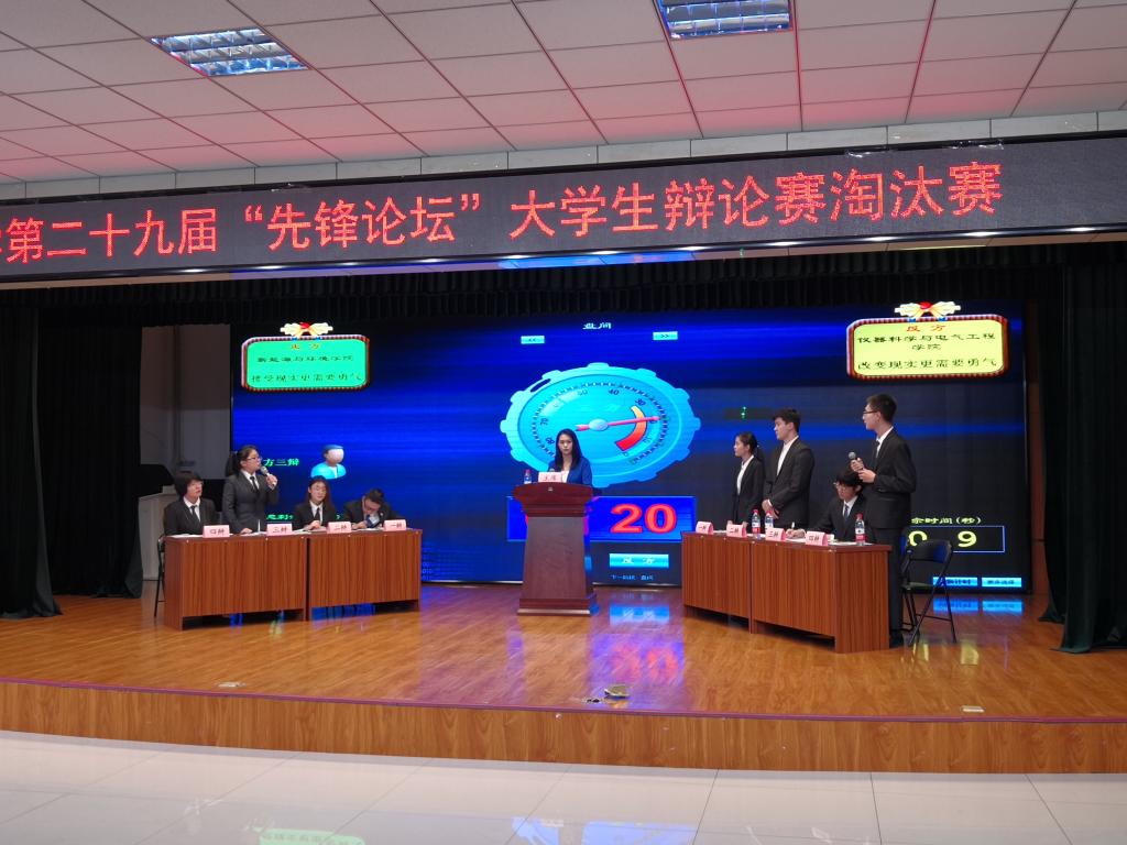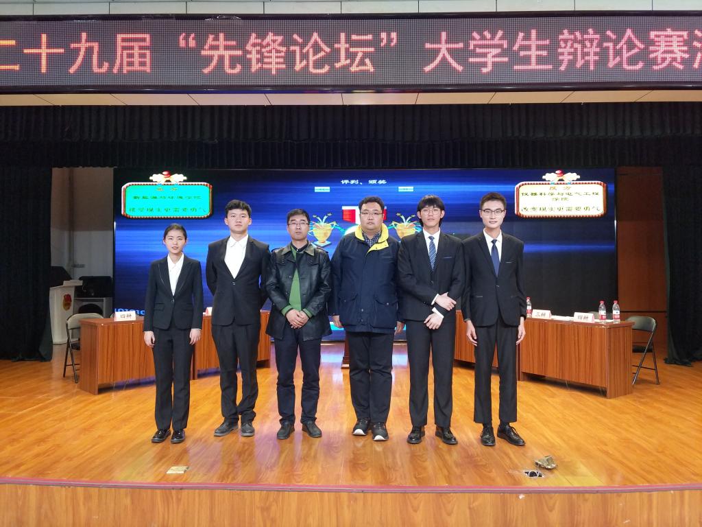 为丰富同学们的文化生活,提高同学们的思辨能力与语言表达能力,suncitygroup太阳成集团辩论队参加了第二十九届“先锋论坛”老员工辩论赛,于10月20日下午3:20在中心校区田家炳老员工活动中心小礼堂举办的淘汰赛中首战告捷,战胜了新能源与环境公司辩论队。2018级王舒啸、严辰龙、刘苏辉同学,2019级刘航同学参加比赛,仪器科学与电气工程公司党委副书记兼副经理、2018级辅导员周伟老师,部分2018级和2019级同学观看了本场辩论赛。
