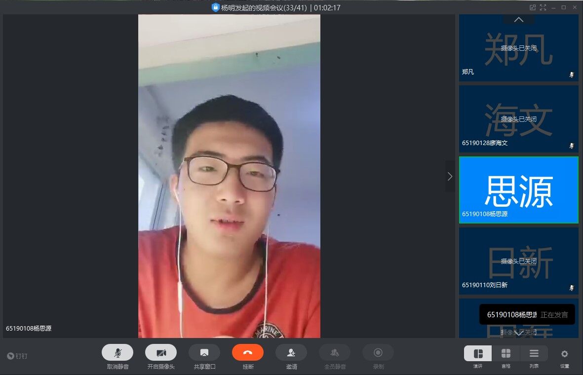 期末在即,为帮助同学们在疫情期间树立正确的学习态度,解决同学们的学习困难,掌握适合自己的学习方法,培养良好的学习习惯,651901班于2020年5月26日晚19:30利用钉钉直播开展“仪电少年,‘疫’起学习”主题班会,本次班会由班长杨明主持,并邀请到651901班班主任王智宏老师、郑凡老师以及辅导员马姗姗老师出席班会。