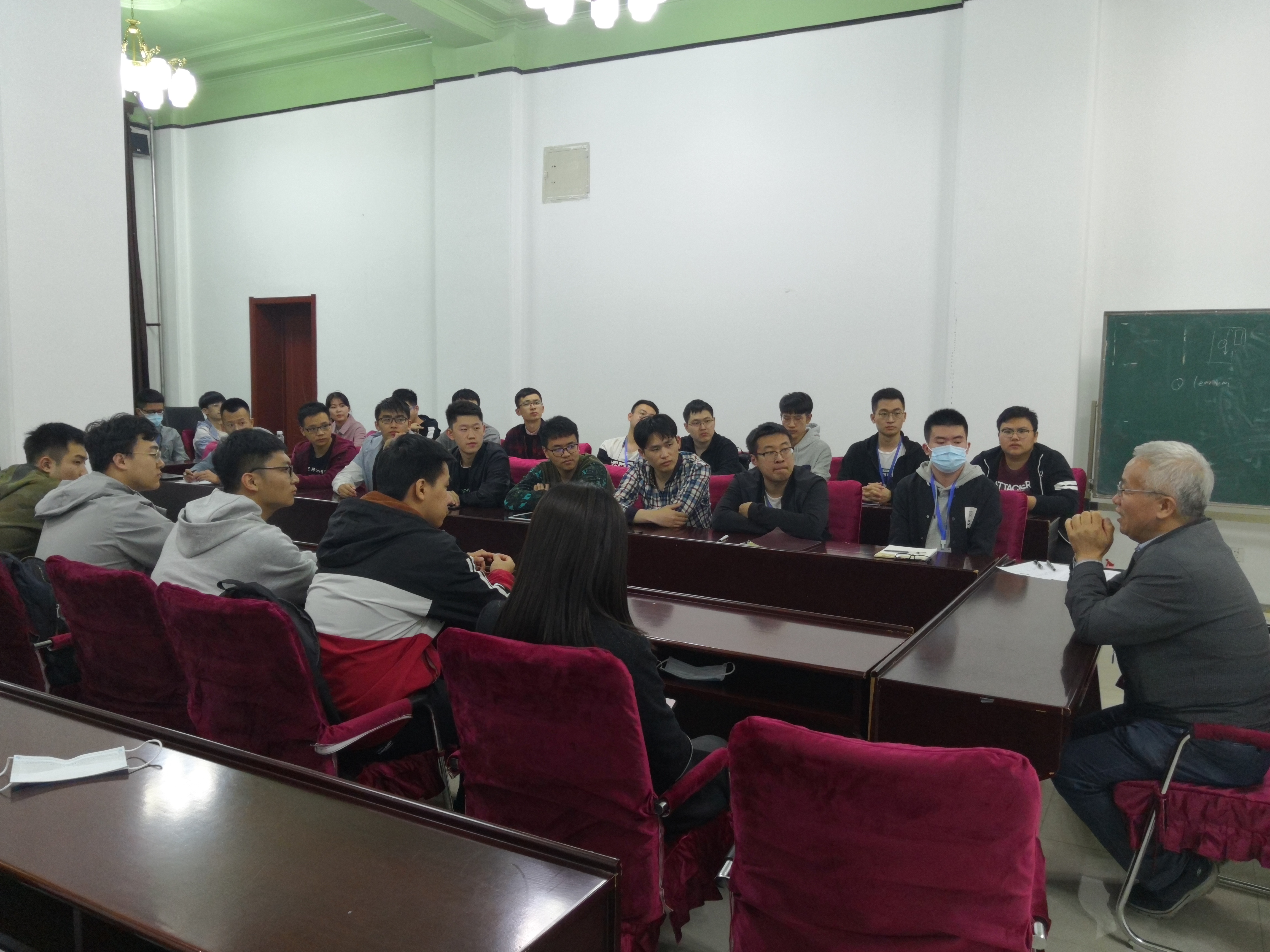 座谈会上,王应吉教授深入浅出地将科研工作中的所见所闻,结合自身青年时期的求学经历,向在场同学们展现了自改革开放以来我国所发生的日新月异的变化。谈及科技创新时,他以其90年代从零开始做核磁共振找水仪的相关研究为例,强调科研要围绕党和国家的需求,做到科技创新与服务社会相结合,并鼓舞在座同学们树立远大目标,为国家科学研究实现“从0到1”的突破做出应有的贡献。提到本次新冠疫情防控成果,王应吉教授表示疫情发生以来,党中央高度重视,始终把人民群众生命安全和身体健康放在第一位,充分发挥了集中力量办大事的制度优势,领导人民团结一心,及时控制住了疫情的蔓延,向全世界彰显了中国力量,展现了中国崛起的潜力,希望青年员工把握机遇顺应时代,将个人奋斗融入到中华民族复兴历史征程中去。最后,王应吉教授引用了毛泽东的语录:“世界是你们的,也是我们的,但是归根结底是你们的。你们青年人朝气蓬勃,正在兴旺时期,好像早晨八九点钟的太阳。希望寄托在你们身上。”来表达对仪电学子的殷切期盼。座谈会后王应吉教授对同学们的问题进行了细致的解答。