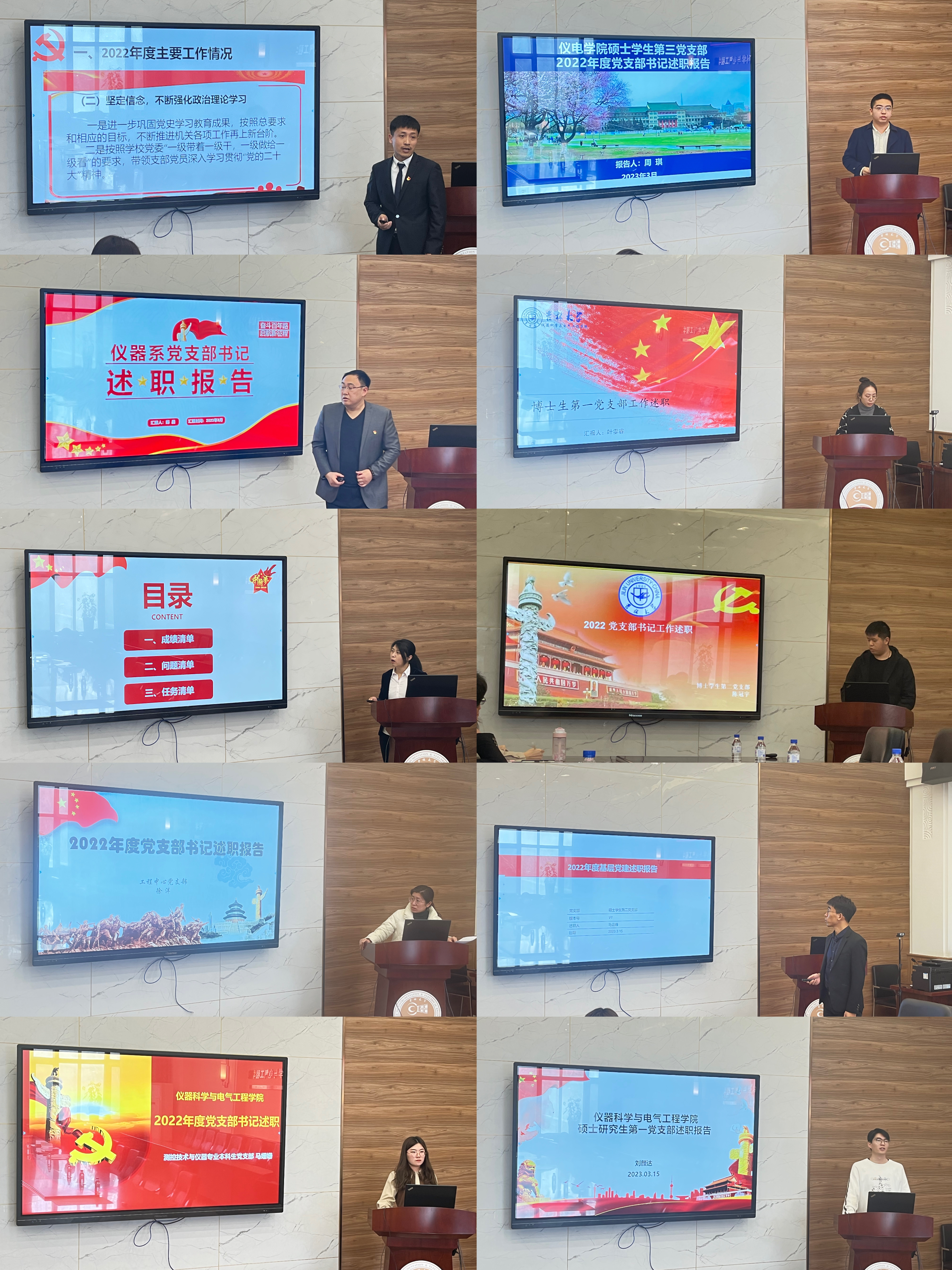 会上,全体党支部书记先后述职,分别对过去一年的支部工作进行了详细的汇报。各支部2022加强了党团联系与合作,积极召开党员大会,开展各类主题教育活动。同时,各支部书记也进行了自我反思,明确支部建设中存在的问题。针对支部党建工作制度化不够、党建引领作用发挥还不够充分等问题,各支部书记提出了整改措施,并明确下一步的工作的方向邱增凯对接下来的工作提出三点建议:一是坚持高质量学习要坚持学好党的创新理论,不断提高政治素养、思维层次和理论水平;要坚持学好党务专业知识,遵循党的建设的基本规律,全面学习运用党内法规,熟练掌握基本党务知识。二是从严落实党建责任。习近平总书记反复强调,抓党建必须抓责任制,抓责任制必须抓责任人,抓责任人必须抓第一责任人,推动公司全面从严治党向基层延伸,责任落实是关键。一年一度的党支部书记抓党建述职评议考核工作,就是对公司党支部书记的一次集中检阅和大考,通过述职评议,下层层压实责任,让党支部书记承担落实好抓党建第一责任,决不能当甩手掌柜。三是统筹推进重点工作。基层党组织能力强不强,抓重点工作是试金石,也是磨刀石,各党支部树牢公司一盘棋思想,统筹推进各项重点工作。通过党员发展、党员教育培训、主题党日、党员先锋工程党支部创先争优等活动,调动、激发党员积极性,更好促进学科发展、人才质量提高、业务水平提升、对外社会服务做强等重点工作。