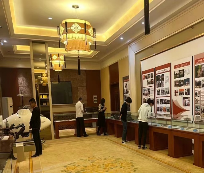2023年5月31日,实验中心党支部全体党员怀着崇敬之意与思念之情,再一次踏入了黄老师的纪念室参观学习,来到了黄老师生前工作和奋斗的地方,白板上依然记录着与员工讨论的科研课题、下一步的工作计划与待解决的问题;整洁的办公桌后的书橱里,满满地装载着专业书籍和珍贵材料;功勋章已布满整个墙面;展示橱里陈列着黄老师在野外地质勘探时使用的专业设备,有磁力仪、吉大移动探测无人机、望远镜和野外工作时的物品等等;另一侧橱窗里的一封封家书寄托着繁忙工作中对家人的思念之情;四周展板上记录着科研工作取得的一项项技术成果……