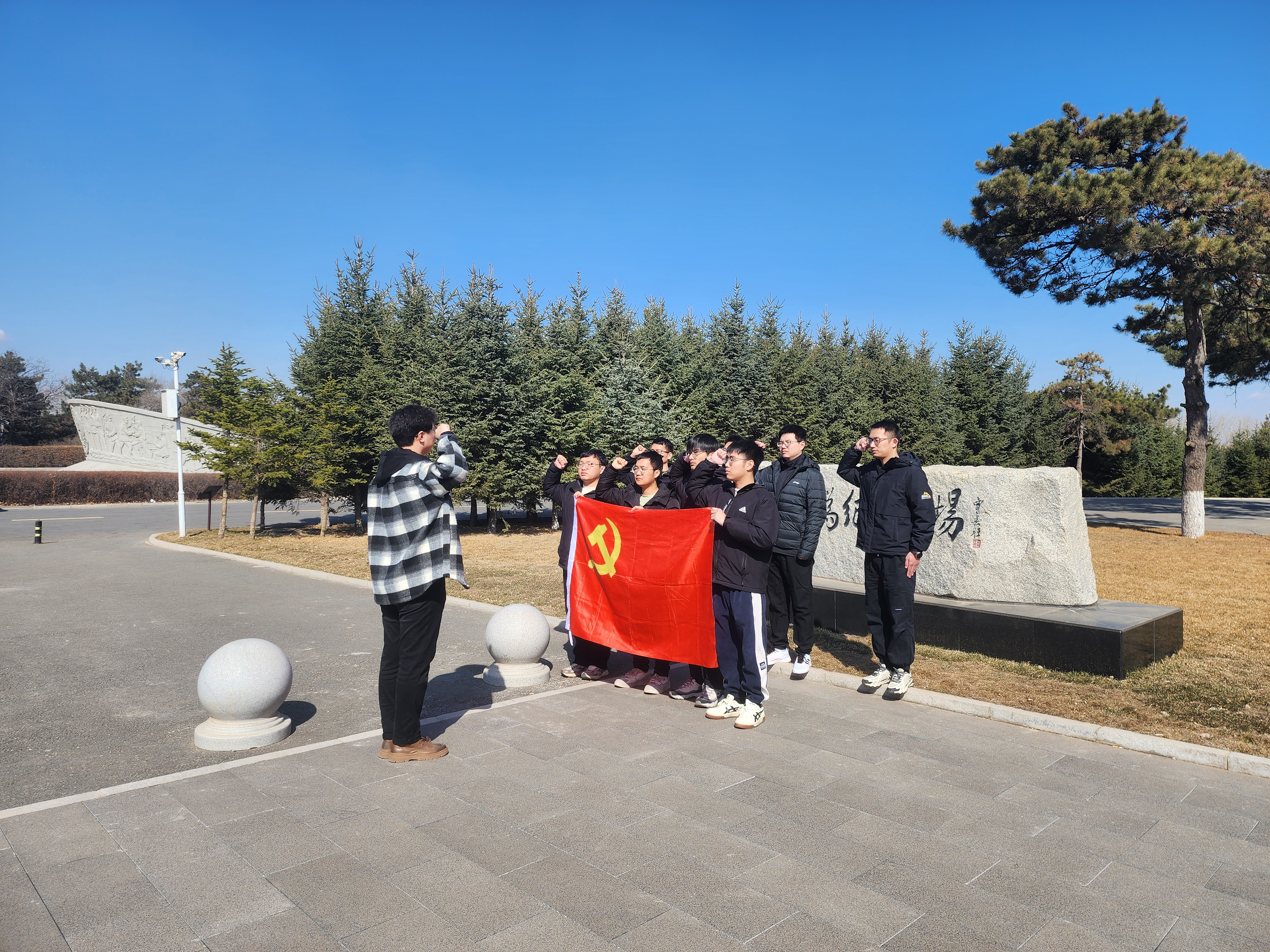 上午8点,在仪电公司博士员工第二党支部书记郝毅同志的带领下,一行人前往长春市革命烈士陵园,瞻仰了吉林公安英烈纪念碑和长春市见义勇为纪念碑,领会纪念碑上镌刻的先烈英勇事迹和不朽精神。在纪念碑前,同志们献上鲜花并默哀致敬,寄托对烈士们的无尽哀思和崇高敬意,表达对烈士们的感激与怀念。随后,一行人参观了长春市革命烈士纪念馆,聆听馆内讲解员讲述的烈士们为了民族独立和人民解放事业,不畏强敌、不怕牺牲的英勇事迹,更加坚定了同学们继承和发扬烈士精神、为实现中华民族伟大复兴的事业而努力奋斗的决心和信心。最后,党员同志在纪念碑前重温入党誓词,初心不改,对革命先烈表达最崇高的敬意。