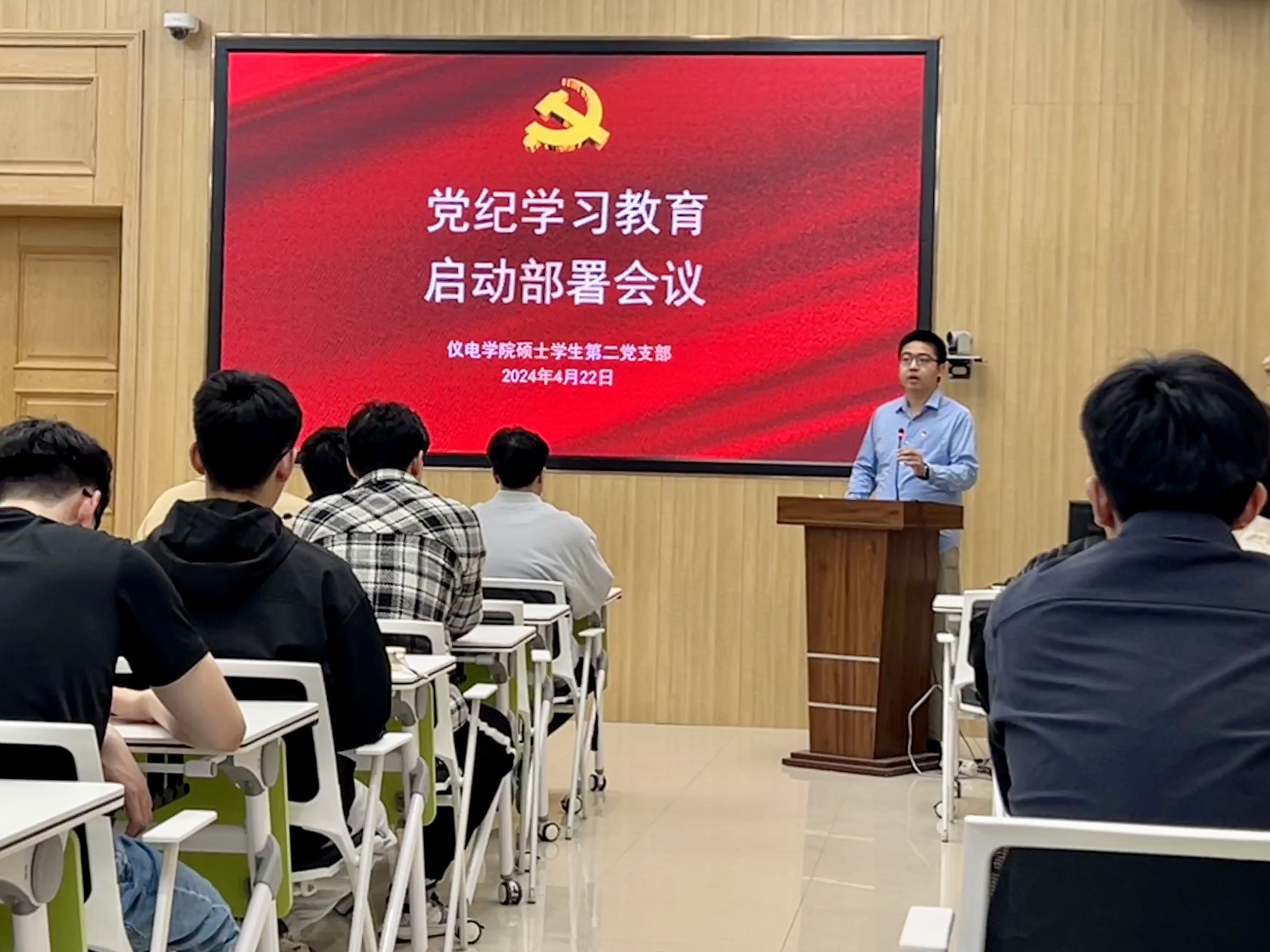 为深入学习贯彻习近平总书记关于党纪学习教育的指示批示精神,深入学习贯彻《中国共产党纪律处分条例》,按照公司、公司党委部署安排,仪电公司硕士员工第二党支部于4月22日晚上在朝阳校区地质宫208会议室召开了党纪学习教育启动部署会议,对本支部的党纪学习工作进行启动部署。党支部全体党员、积极分子参加会议,会议由党支部书记周琪老师主持。