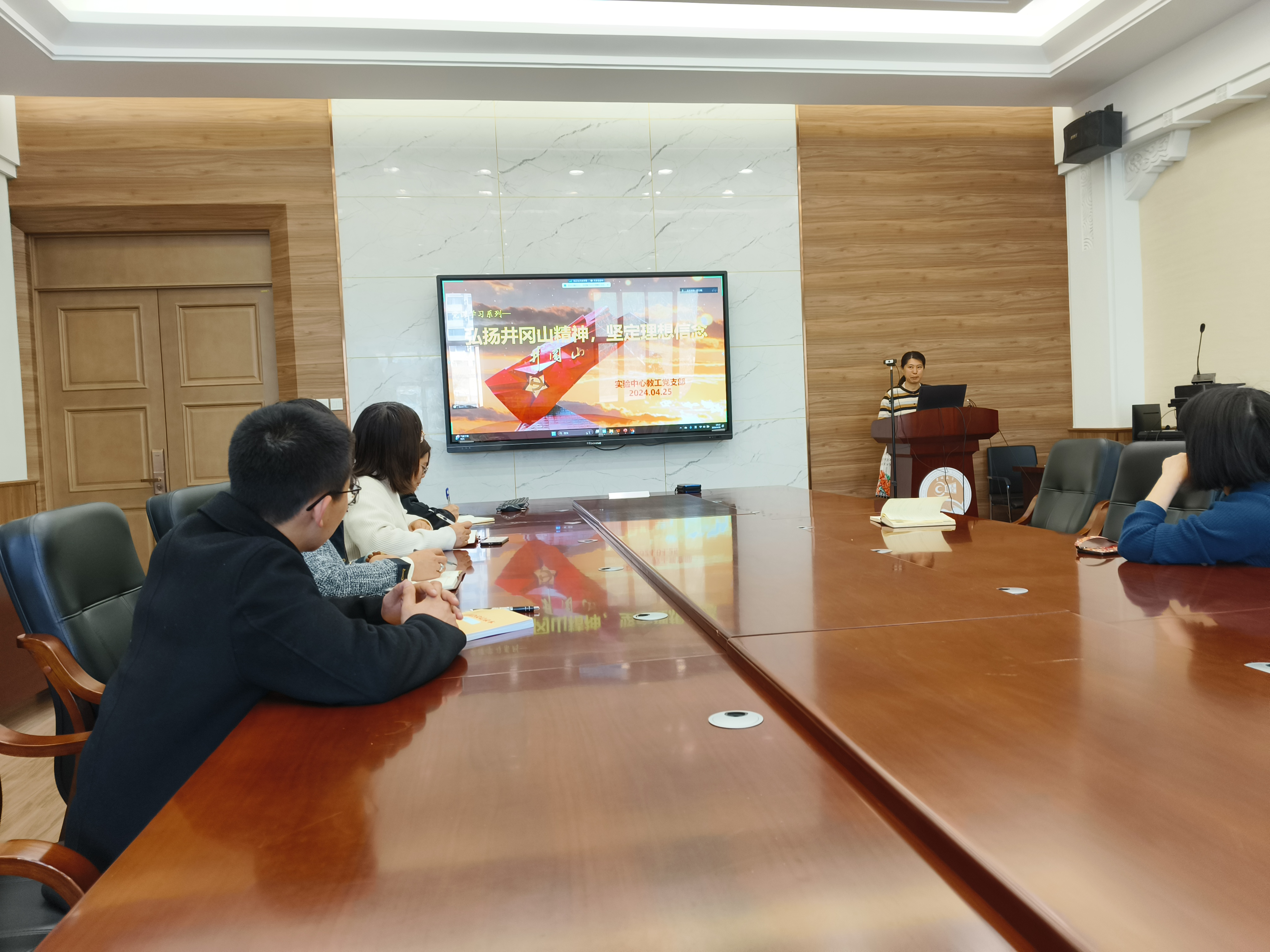 为深入学习体会井冈山精神,坚定理想信念,实验中心教工党支部派三名党员同志赴井冈山开展了为期五天的理想信念教育专题培训。4月25日,支部书记万云霞同志讲授专题党课,分享传达学习精神。支部党员共同学习讨论,从中汲取精神力量。