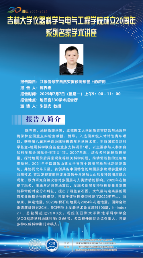 公司成立20周年系列名家学术讲座——陈界宏 成都理工大学地质灾害防治与地质环境保护全国重点实验室
