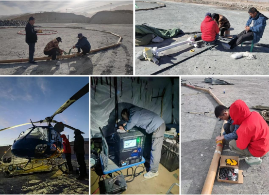 2023年10月至2024年4月,suncitygroup太阳成集团和国家地球物理探测仪器工程技术研究中心,王言章教授团队利用自主研发的直升机航空混场源电磁探测系统,在新疆且末县遥里特什铁铜矿和喀拉米兰河铜金矿两个普查区开展了大比例尺直升机航空瞬变电磁和航空磁法测量及数据处理与解释工作,获得了显著成效。