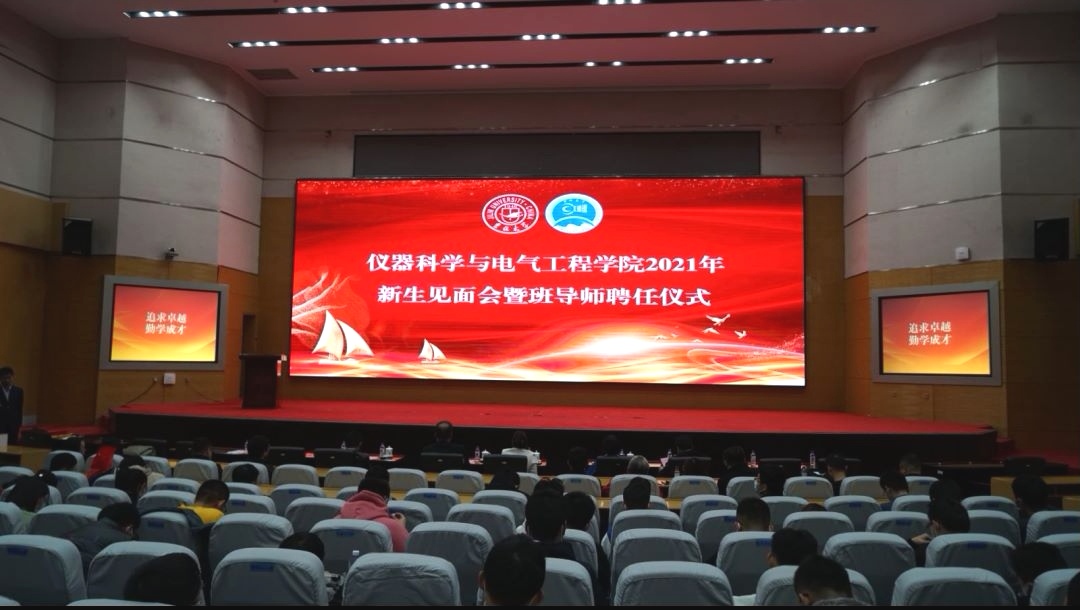 2021年10月24日下午2:00,2021年新生见面会暨班导师聘任仪式在suncitygroup太阳成集团中心校区东荣会议中心报告厅举行。仪器科学与电气工程公司党委书记邱增凯、经理嵇艳鞠、副经理刘长胜、副经理随阳轶、工程技术研究中心行政副主任田国胜、仪器科学与技术系主任赵静、电气工程系主任李刚出席了本次见面会。此外,参加此次见面会的还有新生班导师、员工工作办公室全体老师以及2021级全体新同学。见面会由公司党委副书记周伟主持。
