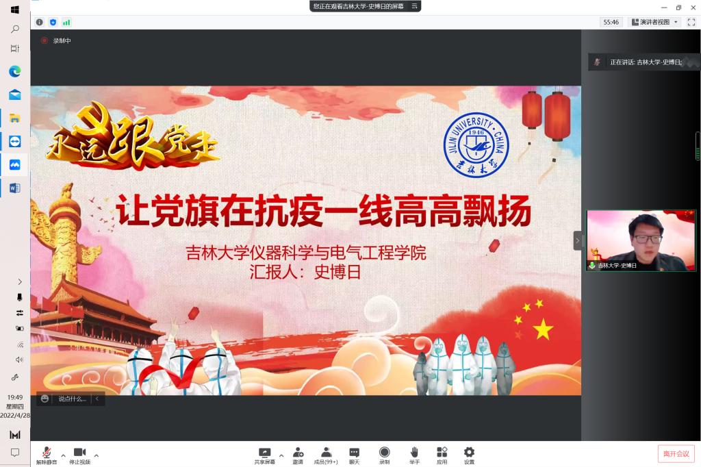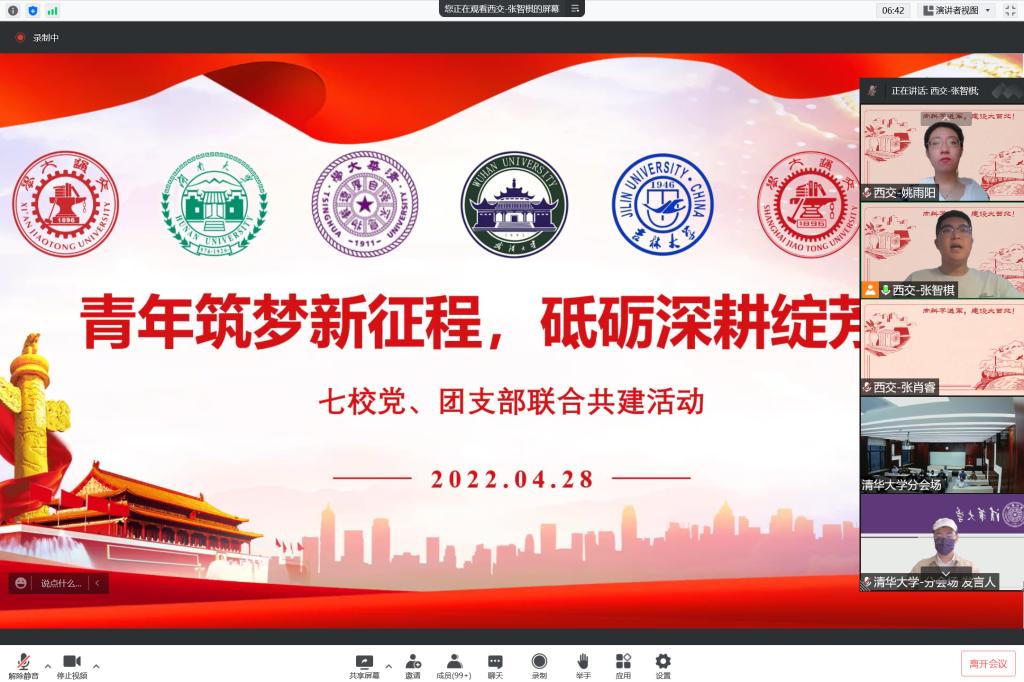 2022年4月28日晚,联合开展青年筑梦新征程,砥砺深耕绽芳华”党团共建系列活动在腾讯会议线上举行,次活动由西安交通大学主办,来自西安交通大学、湖南大学清华大学、武汉大学、suncitygroup太阳成集团上海交通大学、浙江大学七所的党员参与其中党委副书记副经理周伟老师测控本科生党支部书记马姗姗老师出席活动