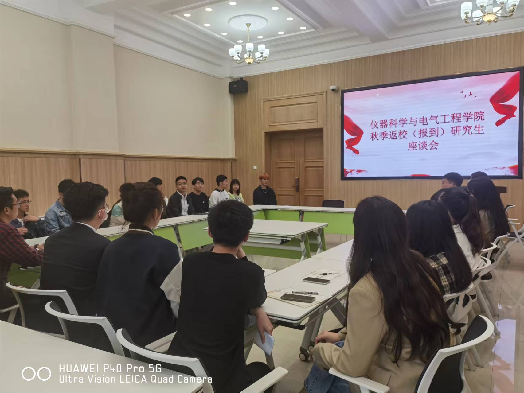 2021级电气工程专业的祁鑫同学谈及暑期科研情况,与在场同学现场探讨了论文写作技巧,表示将在把好科研关的同时认真履行班长的职责。部分研究生代表讲述了自己在返校过程中遇到的困难,最终在公司研究生办公室的帮助下顺利返校。结合身边返校同学的经历,他向公司、公司各位老师在返校过程中认真严谨的工作态度和坚持“以员工为本”的工作方法,让每位同学都能安安全全“回家”表示感谢。