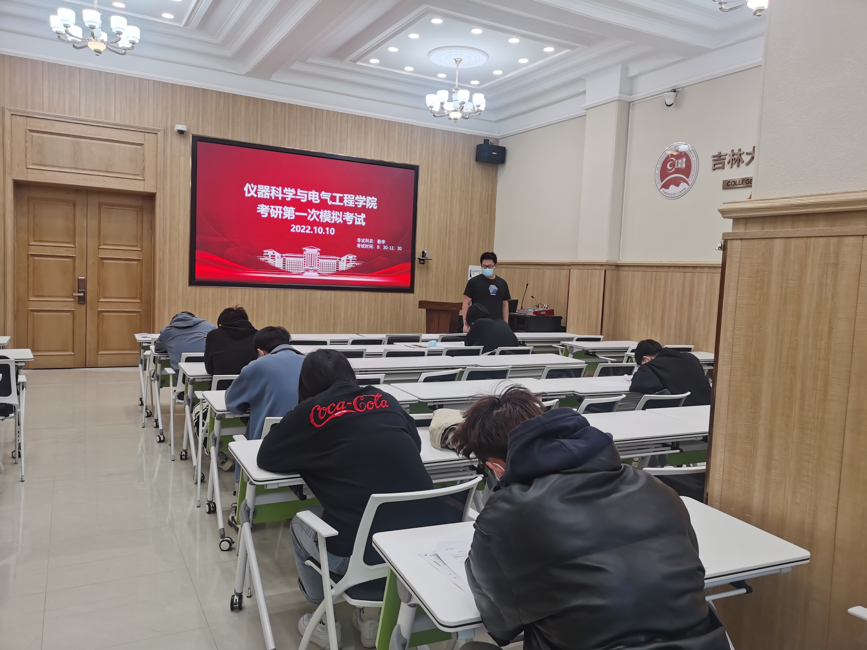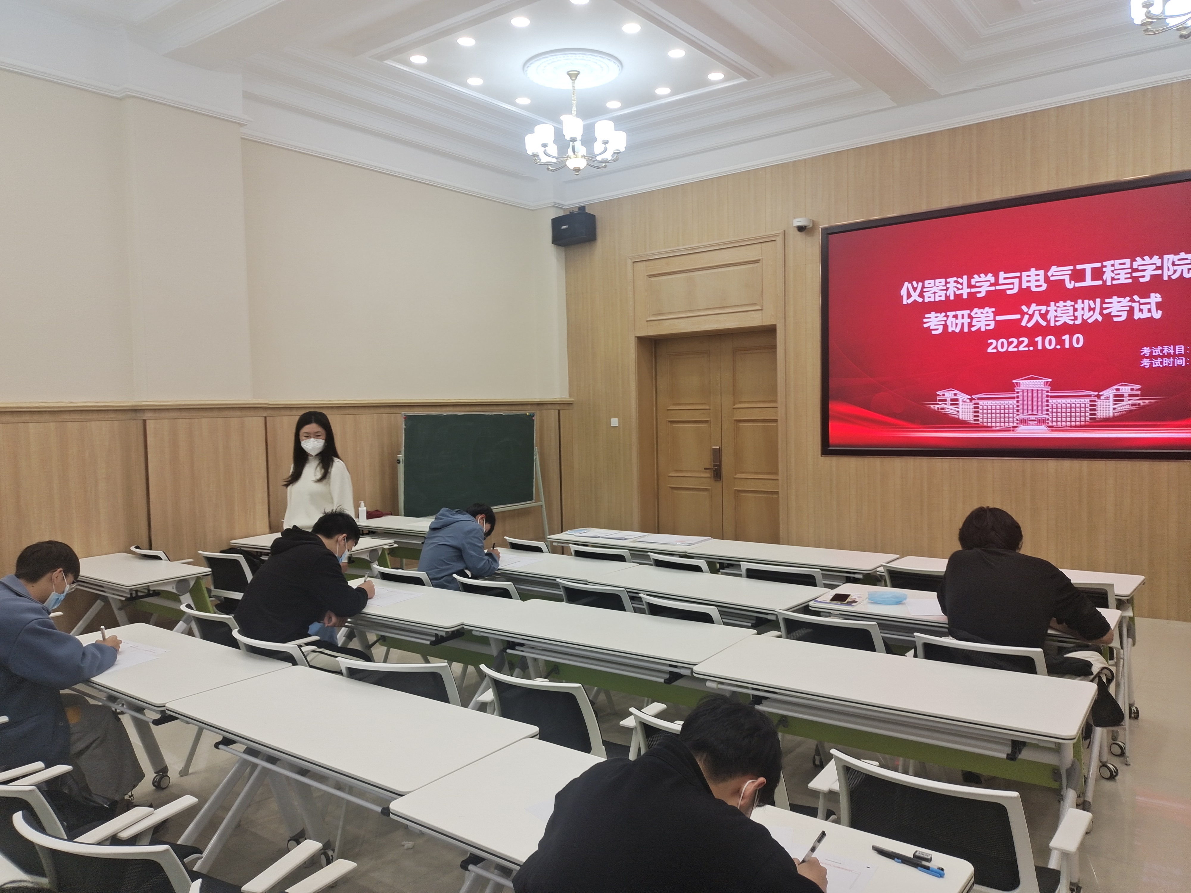 8:30,2019级本科生辅导员马姗姗、博士兼职辅导员史博日来到模拟考场现场,向同学们解读模拟考试要求后,考试正式开始。为了让考研的同学们更好的了解和体验考试,熟悉题型结构和考场氛围,本次模拟考试全程安排监考人员,考试时间、试卷和答题卡样式、答题填涂规则等均严格按照研究生考试要求进行,旨在为同学们提供了一个自我检测的机会,让同学们更全面地了解到自己在学习过程中的优势与不足,同学们在拿到试卷后迅速进入答题状态,并以此次模拟考试为契机,找出差距和不足。