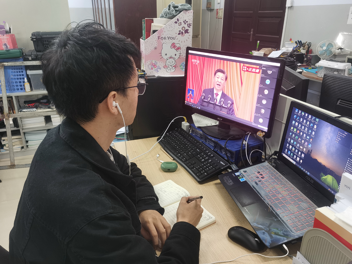 同志们认真观看二十大开幕式: