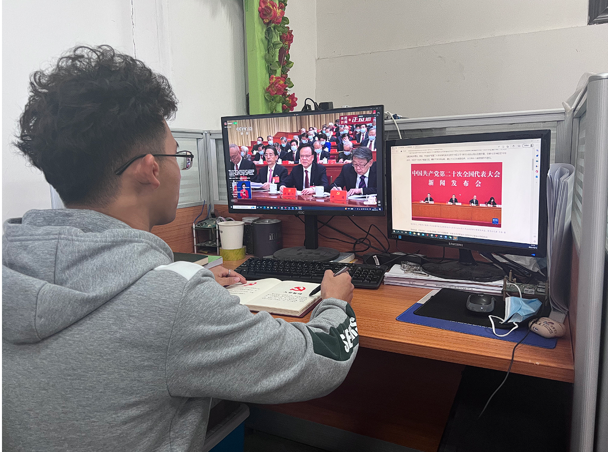 2022年10月16日上午10时,举世瞩目的中国共产党第二十次全国代表大会隆重召开。公司硕士员工第二党支部积极响应号召,组织支部全体党员、发展对象和积极分子集体线上观看党的二十大开幕式盛况,全体同志、同学都满怀激情、满怀崇敬地观看了开幕式,认真听取了会议报告,学习了习近平讲话的精神。