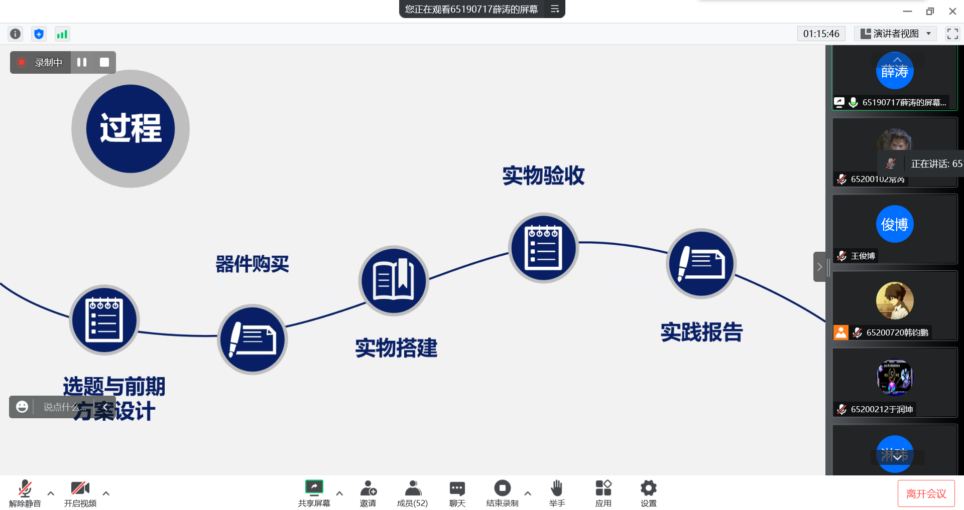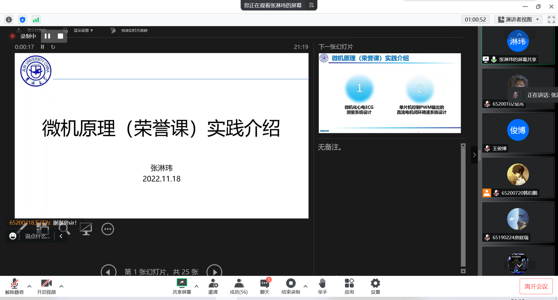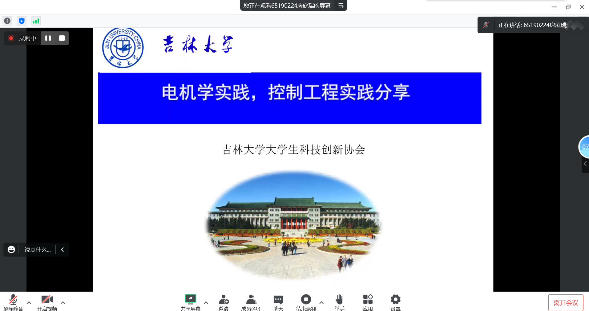 首先,朱莹莹同学对电力电子实验与综合设计实践、普通班的微机接口实验与综合设计实践内容和实践要求进行了细致的介绍,并给我们展示了她的实践成果,让我们了解了两门实践到底都需要做什么以及实践时的注意事项和时间分配问题;接下来是房庭瑞同学对于电机学实验与综合设计实践和控制系统实验与综合设计实践的介绍,房庭瑞同学分任务式向我们介绍了每个实践的实践内容和注意事项,并把一些容易出错的地方都给予我们提醒和说明,让我们能够提高实践效率;然后是张淋玮同学对于微机接口实验与综合设计实践荣誉课的基本介绍,张淋玮同学通过对自己的实践项目细致的讲解,让我们对微机接口实验与综合设计实践荣誉课的要求和实现方法都有了清晰的认识和理解;紧接着,薛涛同学又为测控的同学们分享了去年自己和其他同学在传感器实践中遇到的问题了需要注意的事项,给同学们传授经验,解答疑问;最后的自由问答环节同学们就各自的情况提出问题,科协第26届主要负责人也都对其耐心的一一进行解答,现场气氛热烈。最后,“仪创课堂——测控&电气专业实践专题分享”活动圆满结束!活动结束后,科协第26届主要负责人仍继续为有疑惑的同学传达经验。