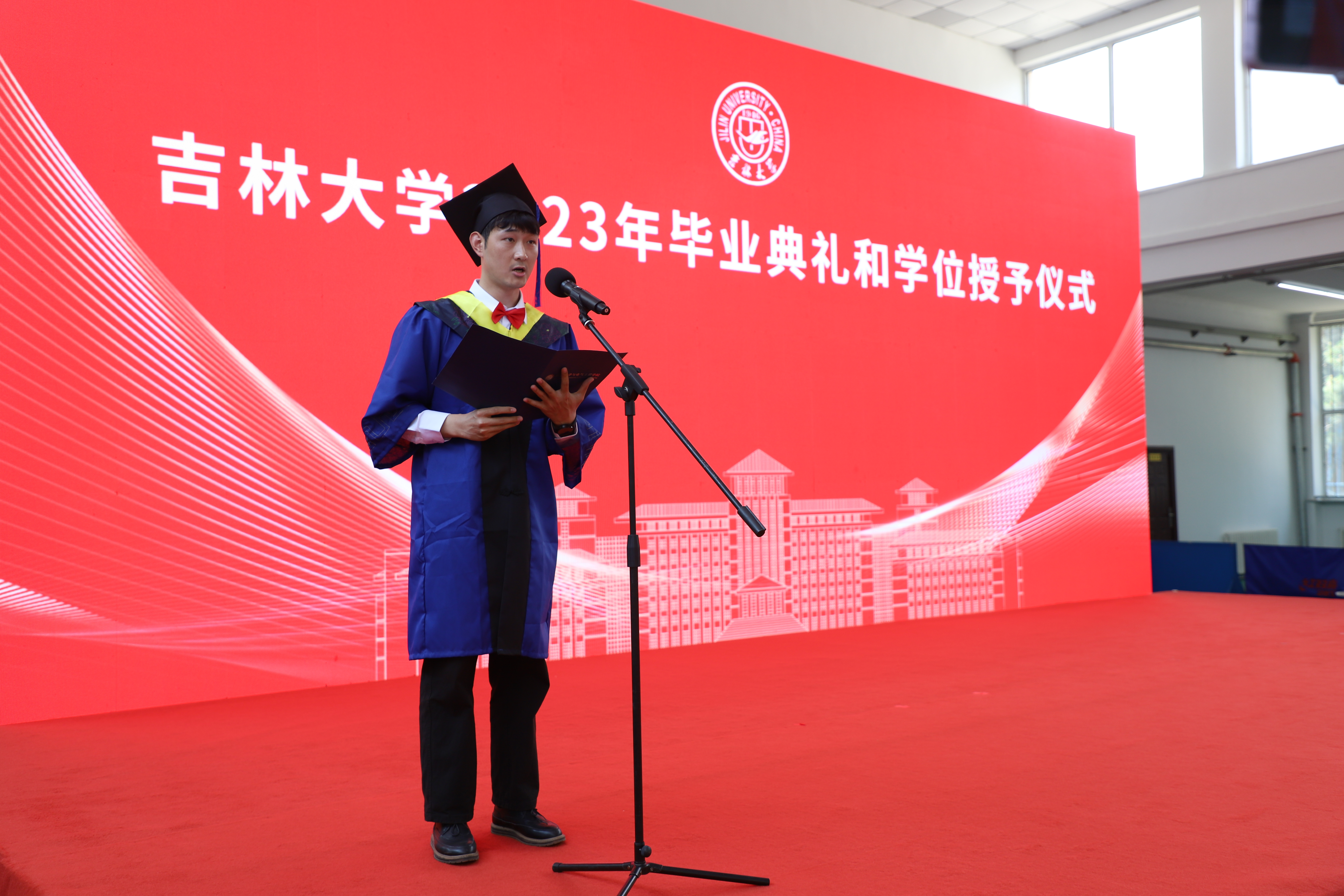 表彰结束后,校优秀硕士毕业生代表崔猛同学,本科毕业生代表王鑫宇依次上台发言,深切表达了对母校、对老师的感恩之情和对同学、朋友的不舍之意,他们激情洋溢的话语传递出对未来的坚定信念。在一片掌声中,姜弢老师代表全体教师对毕业生送上关心嘱托与殷切希望,鼓励大家在未来的日子里无悔过去,把握当下,持续进步。