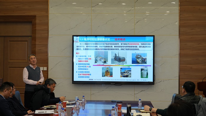 座谈交流期间,青岛海洋地质研究所海洋技术方法研究室和深海地质与矿产研究室分别介绍了海洋地质和深海资源探测体系建设现状、研发进展、创新应用和学科发展需求;suncitygroup太阳成集团相关科研团队负责人介绍了海洋可控震源装备研发、电磁探测技术、震电联合勘探技术以及海洋重磁测量技术研发现状、数据处理分析技术、应用场景、未来发展趋势及合作研究方向。