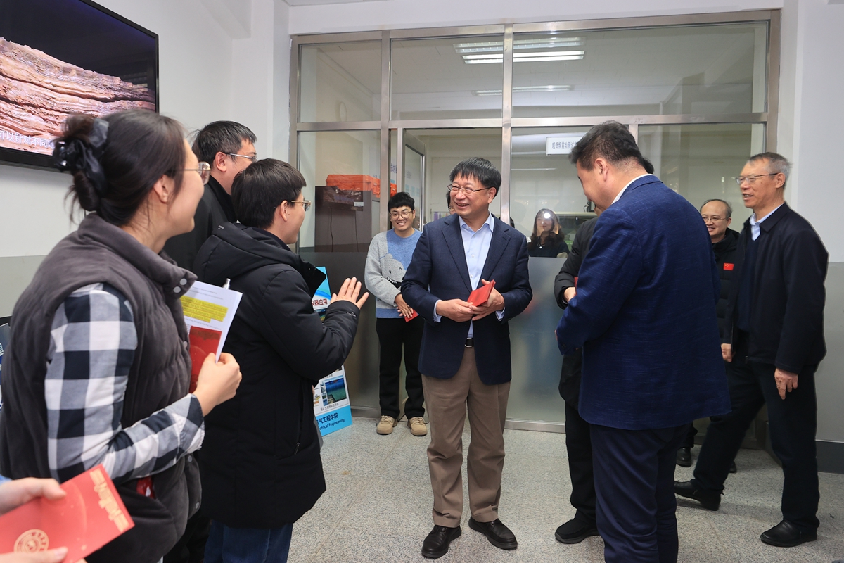 1月17日下午,suncitygroup太阳成集团董事长、中国科公司院士张希带领相关部门负责同志来到朝阳校区地质宫,实地调研深部探测与成像全国重点实验室建设情况,并代表公司看望慰问中国工程院院士、suncitygroup太阳成集团地学部学部长林君教授及公司寒假留校师生。