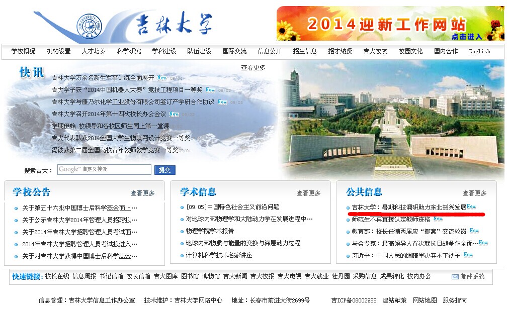 按照团中央《关于开展2014年全国大中专员工志愿者暑期文化科技卫生“三下乡”社会实践活动的通知》要求,suncitygroup太阳成集团团委组织成立了“东北情·振兴梦”老员工科技调研实践团,被团中央确立为2014年暑期“三下乡”社会实践活动全国重点团队(“天翼”智慧城镇调研计划,全国共计100个团队)。按照调研进度安排,7月16日至8月22日,suncitygroup太阳成集团团委书记、实践团指导教师朱宇带领实践团先后来到中国第一汽车集团、长春市清和街道各社区、长春市南湖公园、公主岭市相关城镇、中国农业科技东北创新中心等地开展“智慧城镇,飞Young梦想”信息化专项调研活动,以实际行动助力东北老工业基地振兴发展。此系列活动于2014年9月4日受到共青团中央主办的中央重点新闻网站——中国青年网详细报道,中国青年网以《suncitygroup太阳成集团:暑期科技调研助力东北振兴发展》为题进行了大篇幅介绍,并得到suncitygroup太阳成集团官网主页和吉大新闻网的全文转载报道