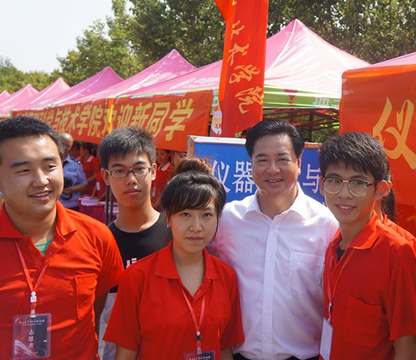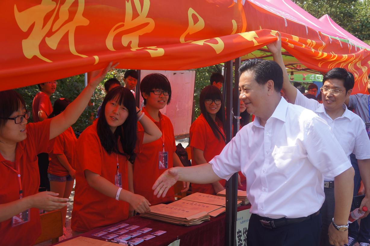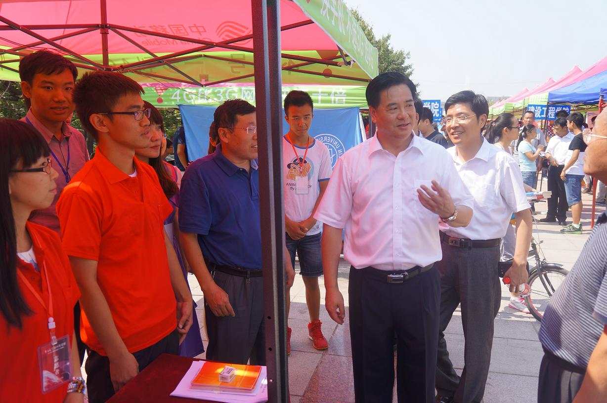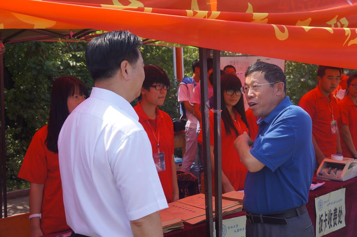 2014年8月30日上午,董事长李元元院士、公司党委副书记兼副董事长韩晓峰教授、副董事长张向东教授在集团相关职能部门负责领导陪同下来到中心校区五月花广场视察2014年迎新工作情况。