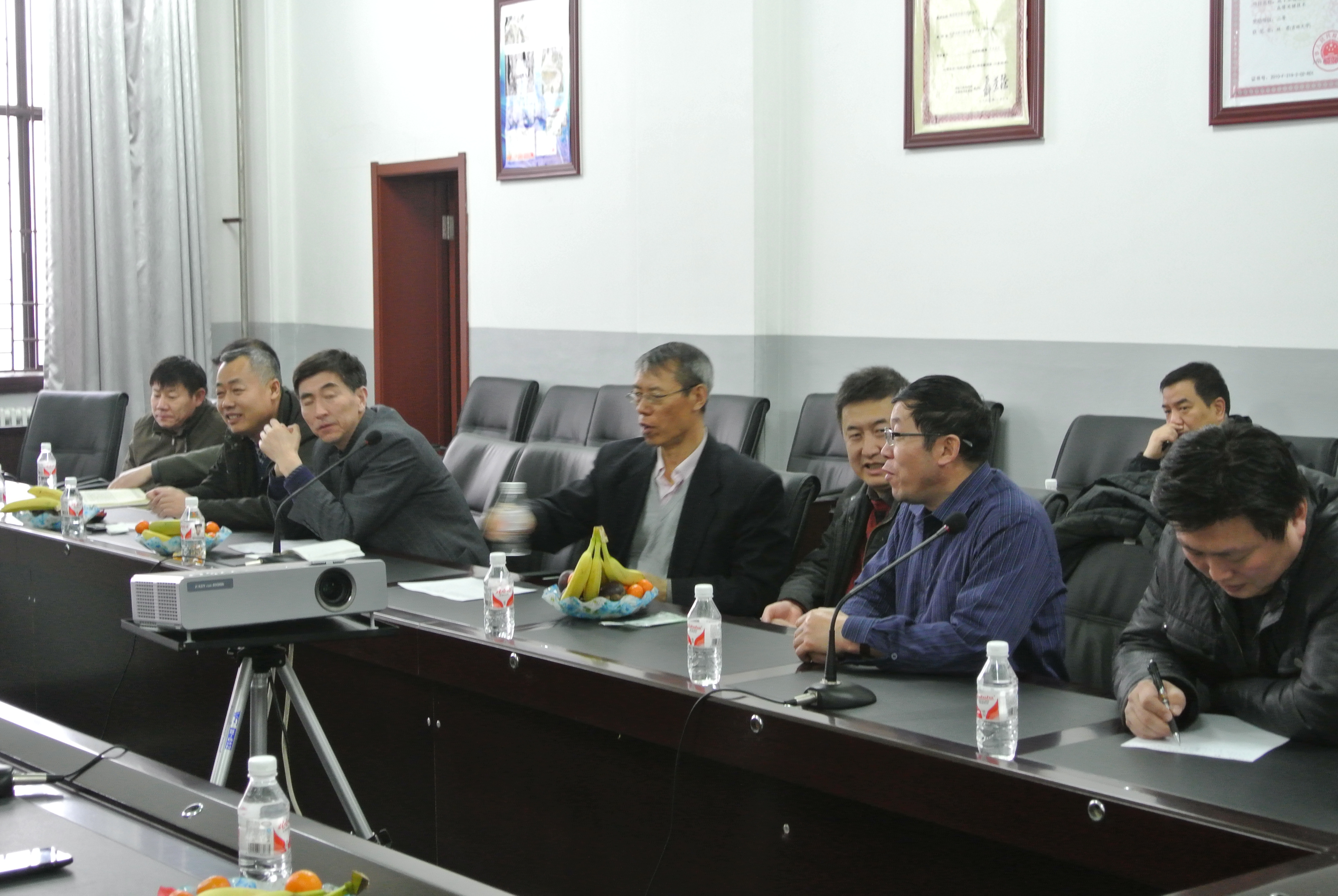 208召开野外工作教师座谈会,参加座谈会的包括公司的全体领导班子,元旦以来参与云南文山州找水、河南省桐柏县吊舱式直升机时间域航空电磁探测系统试飞和河南洛阳采空区地震勘查等野外实验的教师队伍。
