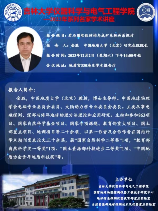 2023年系列名家学术讲座--中国地质大学(北京)研究生院经理 金胜教授