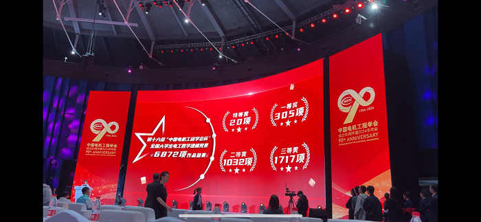李刚老师的指导下,队长黄屹毅与队员郝奥星蔡东在三天三夜的竞赛中,结合课题组相关专业知识的积累,队内分工合作,任务分配明确,对问题进行分析,建立模型,问题假设,最后求解,最后荣获国家级特等奖。10月12日,黄屹毅受邀参加中国电机工程学会成立90周年暨2024年年会开幕式和颁奖仪式。