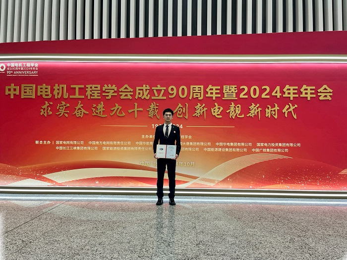 图2 获奖代表黄屹毅中国电机工程学会成立90周年暨2024年年会上留影