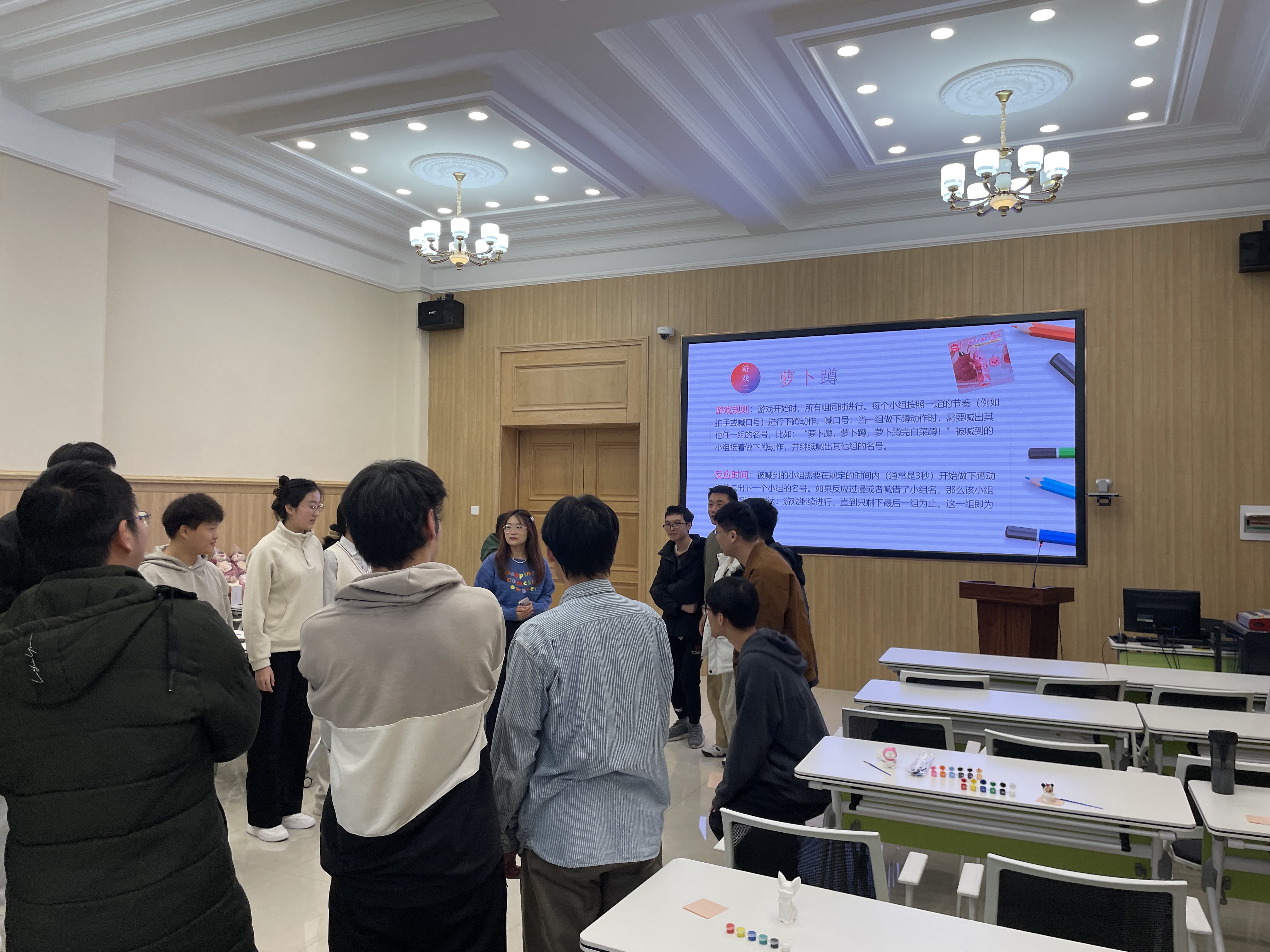 活动开始前各位志愿者精心布置活动现场,准备了丰富的礼品和道具,营造出温馨而富有艺术氛围的环境。心理朋辈辅导员马婧涵向各位同学介绍了活动流程,研究生辅导员周琪老师向各位参加活动的同学表示了欢迎