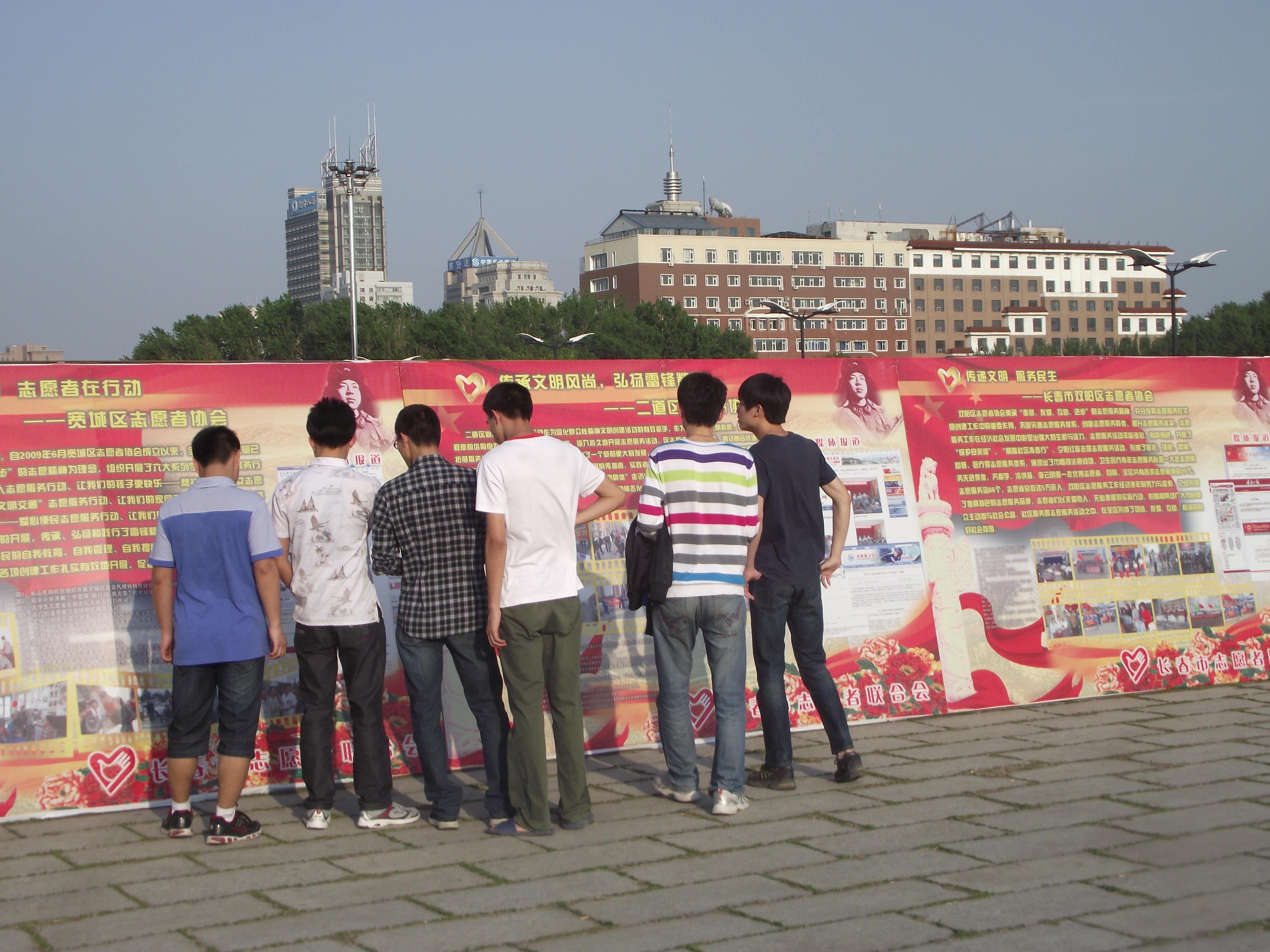 为纪念中国共青团成立90周年,进一步弘扬“奉献、友爱、互助、进步”的志愿服务精神、学习全省各级团组织开展志愿服务活动的先进经验,suncitygroup太阳成集团团委、员工会于2012年5月20日中午12:00组织主要员工干部前往文化广场参观了由省文明办、省志愿者协会联合举办的《吉林志愿服务大型图片展》。